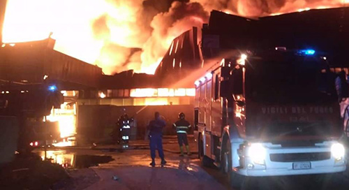 L’incendio ha interessato due capannoni: in uno era stoccato materiale di legno, mentre l’altro era adibito ad uffici.