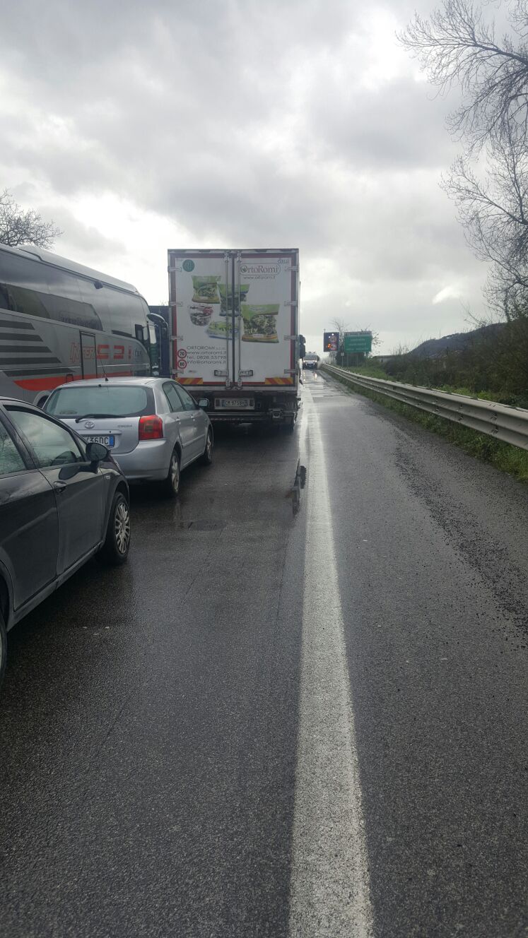 Intanto le macchine sono bloccate in attesa dello spostamento del veicolo incidentato.