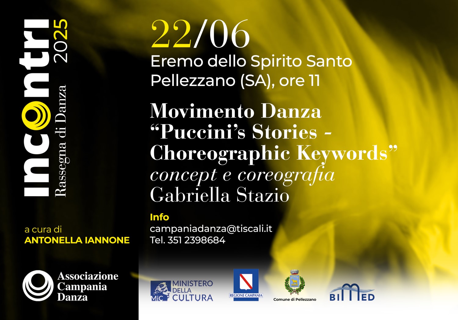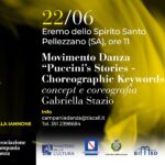 La coreografa Gabriella Stazio nel centenario della morte di “Giacomo Puccini” mette in scena Puccini’s Stories – Choreographic Keywords, una coreografia contemporanea in cui le figure femminili delle opere pucciniane trovano uno spazio fatto di citazioni, frammenti, ambientazioni all’interno di una struttura coreografica casuale ed interattiva con gli spettatori.