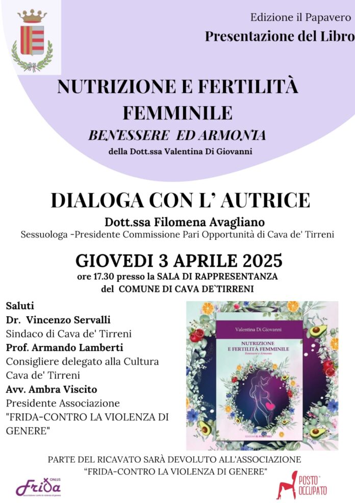 A dialogare con lei, esplorando le difficoltà legate alla maternità e il ruolo cruciale dell’alimentazione per la fertilità, sarà la dott.ssa Filomena Avagliano, sessuologa, consigliera comunale e presidente della Commissione Pari Opportunità del comune di Cava de’ Tirreni