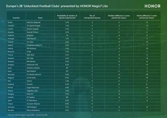 L'analisi ha coinvolto 28 squadre europee, rivelando un quadro variegato. Alcune squadre, come la Stella Rossa di Belgrado, nonostante un numero elevato di infortuni, sono riuscite a migliorare le proprie prestazioni. Altre, invece, hanno risentito maggiormente di questi eventi.