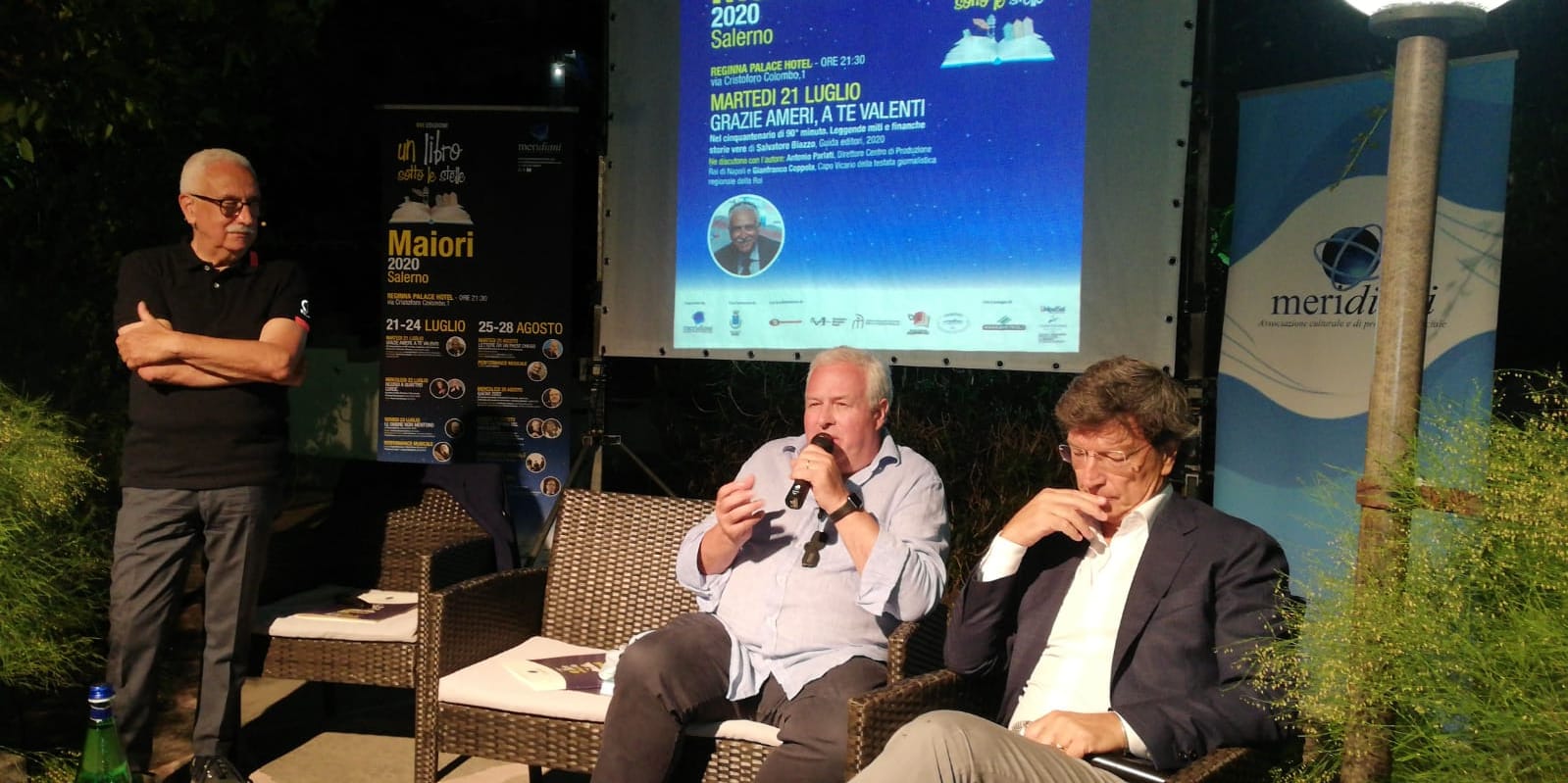 Ha preso il via ieri sera 21 luglio nell’incantevole giardino del Reginna Palace Hotel di Maiori, con la presentazione del libro “ Grazie Ameri, a te Valenti. Nel cinquantenario di 90° minuto. Leggende miti e finanche storie vere” del giornalista Rai Salvatore Biazzo, la sedicesima edizione della rassegna nazionale editoriale “Un libro sotto le stelle” a cui hanno partecipato il Direttore del Centro di Produzione della Rai di Napoli Antonio Parlati e il Capo Vicario della testata giornalistica regionale della Rai Gianfranco Coppola.