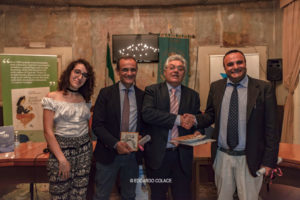 Particolare ed originale la copertina del libro che, come ha spiegato il responsabile della casa editrice Areablù, Nicolò Farina, è stata realizzata creando un effetto lucido, tipico delle ceramiche vietresi:” Abbiamo utilizzato una particolare resina e , per una strana coincidenza, visto che la Kowaliska era ebrea, una macchina tipografica di origine israeliana”. Il fotografo Gianni Grattacaso ha raccontato le difficoltà incontrate 25 anni fa, nel gennaio del 1993, per fotografare il pavimento in ceramica di Villa Ricciardi:” Vito mi chiamò e mi disse che dovevamo andare a fotografare un’opera d’arte. Insieme arrivammo nella frazione Rotolo di Cava ed entrati nella sala da pranzo di Villa Ricciardi io, non vedendo alcun quadro o scultura in giro, gli chiesi dove fosse l’opera d’arte da fotografare e lui mi disse:” E’ qui, sotto i tuoi piedi”, era il pavimento di cui parliamo questa sera. Fotografai tutte le figure cercando di evitare di far riflettere la luce sulla superficie lucida della ceramica”. Barbara Tesauro ha recitato in modo coinvolgete una poesia, “ Fattore K”, contenuta nel libro, che l’artista Ugo Marano dedicò, nel 1992, a Irene Kowaliska. Durante la serata è stato proiettato il bellissimo ed emozionante filmato realizzato nel 1989 dalla nota regista salernitana Giustina Laurenzi :”Harmonia – Ritratto di Irene Kowaliska, un documento storico importante, nel quale la Kowaliska, che all’epoca aveva 84 anni, viene intervistata mentre, percorrendo le vie e i vicoli di Vietri, racconta la sua vita, il suo incontro con Guido Gambone, la “leggenda della ceramica” nella Faenzera di don Ciccio Avallone e la sua opera. Presente anche l’Assessore Regionale Franco Picarone che ha apprezzato il libro di Vito Pinto:” Con grande sensibilità Vito Pinto ci fa riflettere su quelle che sono le pietre miliari della nostra storia” e il Sindaco Marcello Civale che ha sottolineato l’importanza di Irene Kowaliska per Vietri:” Appartiene alla nostra storia: è un’icona della nostra ceramica che rappresenta la storia e la cultura della nostra cittadina”. (Foto di Edoardo Colace).