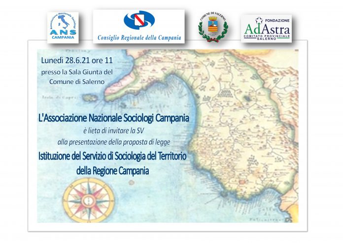 Lunedì 28 giugno 2021, alle ore 11.00, presso il Salone dei Marmi del Comune di Salerno, via Roma, l’on. Francesco Picarone, presidente della Commissione Regionale Bilancio, presenterà la proposta di legge per la “Istituzione del Servizio di Sociologia del Territorio”, servizio la cui realizzazione, intende apportare un contributo organizzativo e professionale strettamente correlato sia alla ripartenza economica quanto soprattutto alla volontà di contrastare efficacemente la crescente estensione del disagio sociale in una fase post emergenziale unica come quella che stiamo vivendo in epoca di Covid-19.
