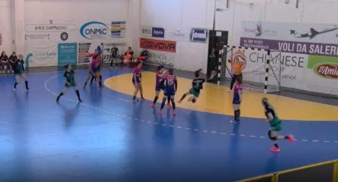 Vittoria casalinga per la Jomi Salerno che tra le mura amiche della palestra Caporale Maggiore Palumbo supera l’Ac Life Style Erice con il risultato finale di 31 – 25 nel recupero della sesta giornata di ritorno della serie A Beretta femminile. Due punti preziosi per la formazione allenata da coach Laura Avram che è sempre più capolista della massima serie. A poche ore di distanza dal faticoso successo contro il Brixen Südtirol, ancora tra le mura amiche la formazione allenata da Laura Avram offre una prova più concreta, passo in avanti fondamentale per allungare a +5 proprio sulle altoatesine e lanciare un chiaro avvertimento in chiave play – off anche alla Mechanic System Oderzo, in attesa del recupero tra le due formazioni in programma il prossimo 6 aprile. La gara è molto combattuta, Erice prova a rispondere agli attacchi salernitani trascinata da Perazic (11 reti a referto per lei). La Jomi Salerno però non ha nessuna intenzione di abbassare la guardia, Krnic al 13′ segna la rete del 7 – 4 poi al 21′ ci pensa Romeo a realizzare la rete dell’ 11 – 6. Le siciliane non ci stanno e piazzano un break di tre reti a zero con la solita Perazic. La prima frazione di gioco si chiude con il punteggio di 16 – 11 in favore di capitan Napoletano e compagne. Nel secondo tempo il sette allenato da coach Laura Avram controlla senza alcun affanno. Lauretti Matos segna la rete del 25 – 19 che accompagna le padrone di casa comodamente nell’ultimo quarto d’ora. Nei minuti finali da segnalare il rientro in campo, dopo una lunga inattività, di Valentina Landri che realizza anche una rete. Finisce 31 – 25 in favore della Jomi Salerno.
