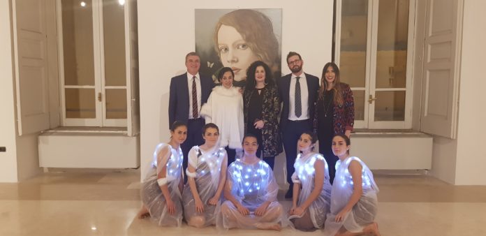 “ L’effetto farfalla è una locuzione presente in fisica nella teoria del caos secondo la quale un semplice movimento di molecole d’aria generato dal battito d’ali di una farfalla può causare una catena di movimenti di altre molecole fino a scatenare un uragano, magari dall’altra parte del mondo. Il cambiamento di un semplice episodio, di un piccolo dettaglio della nostra vita può mutare tutto il corso della nostra esistenza. Io sono partita da questa teoria che mi ha affascinata per dare il titolo alla mia mostra “Effetto Farfalla” dove protagoniste delle mie opere sono le farfalle e i ritratti di sei volti di donna”. Di straordinaria bellezza i volti delle donne di Olga Marciano: Ambra, con i suoi colori vivaci; Demetra, che significa “Madre Terra”: una donna che nasce appunto dalla terra; Penelope, il cui abito, adorno di merletti e pizzi è curato in ogni dettaglio; Falena, una donna un po’ malinconica, circondata da alberi spogli; Mariposa che significa farfalla in spagnolo; Anastasia, una giovane circondata da farfalle che escono fuori dalla tela del quadro e volano sulle pareti della sala del Museo. Donne che con i loro sguardi intensi, profondi, provocano delle emozioni forti, che potrebbero anche scatenare, in qualche osservatore particolarmente sensibile, la famosa sindrome di Stendhal. La mostra della nota artista salernitana, inaugurata domenica sera presso il Museo Diocesano “San Matteo” di Salerno, diretto da Don Luigi Aversa, sarà visitabile, gratuitamente, fino all’8 dicembre. E’ stata proposta ed organizzata dal dottor Fabrizio Moscati, Consulente Finanziario che lavora con la “ Financial Advisor Allianz Bank” di Salerno e da oltre trent’anni si occupa di investimenti:” Una forma di investimento, alternativa alle altre, è sicuramente l’Arte che ha sempre rappresentato una diversificazione negli investimenti. Mi piace promuovere gli artisti più validi del territorio come Olga Marciano”. Tutti i quadri esposti sono di grandi dimensioni (150 x 120) e sono realizzati con la tecnica ad olio su tela: manifestano lo stile figurativo – iperrealistico che caratterizza le opere di Olga Marciano ed esprimono tutta la creatività e l’interiorità dell’artista:” Dipingo con impeto, con l’anima, con tutta me stessa, quasi con rabbia, con irruenza”. Le farfalle per Olga Marciano oltre a rappresentare la leggerezza, l’allegria:” La vita, ma anche l’arte andrebbero vissute con la leggerezza di una farfalla” – sono anche messaggere di spiritualità – ” Sono il segnale di una presenza che vuole comunicarci qualcosa: ogni volta che vedo una farfalla e come se salutassi qualcuno dei miei cari che non c’è più. C’è una farfalla in particolare che mi accompagna spesso: è di colore giallo, dello stesso colore dei capelli di mia sorella”. La pittrice salernitana ama le nuove tecnologie: essa stessa ha tenuto delle lezioni di storia dell’arte al Corso di Laurea Triennale con orientamento Videogiochi e Animazione (IUDAV di Solofra):” Bisogna essere curiosi verso queste nuove tecnologie che sono una vera e propria forma d’arte”. Per la prima volta in questa mostra scaricando l’App MediAR, messa a disposizione da” Conform Scarl” e “Prism Consulting”, si possono vedere le opere animarsi, prendere vita virtualmente con la realtà aumentata che, come ha spiegato il dottor Carlo Cuomo, formatore e consulente tecnologico:” E’ una tecnologia che dà la possibilità di aggiungere contenuti digitali al mondo reale attraverso l’uso dello smartphone o del tablet”. Il vernissage è iniziato con una suggestiva coreografia di danza contemporanea realizzata da Eleonora Santoro, Direttrice Artistica della scuola di danza “OltreDanza”: cinque ballerine e un danzatore, racchiusi su loro stessi a formare una crisalide, sulle note della musica composta dalla pianista Imma Battista, sono diventate farfalle che hanno volato verso i quadri esposti. La dottoressa Imma Battista, Direttrice del Conservatorio Martucci di Salerno, ha sottolineato il legame esistente tra la musica e la pittura:” C’è una visione di tipo sensoriale che è legata non soltanto all’immagine, ma all’immagine in movimento che rimanda al concetto di suono: l’artista Olga Marciano, che è un’artista vera, quasi rinascimentale, un’artista che ha un rapporto polifonico con l’arte, molto spesso traduce il colore in movimento. Nelle sue opere c’è il suono nella vibrazione dei colori, negli sguardi delle donne rappresentate che sembrano voler emerge dalla tela”. Sono intervenuti per un breve saluto: l’Assessore alla Cultura Antonia Willburger, il Senatore Alfonso Andria e il già Procuratore della Repubblica Corrado Lembo.