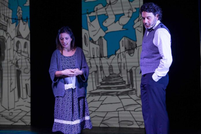 Antonello Ronga e’ soddisfatto anche del progetto “Traspose”:” e’ stata una scommessa vinta. “”Sicuramente Io speriamo che me la cavo” e’ stato lo spettacolo che mi ha emozionato di più interpretare-racconta Ronga- rivedo in me la figura dell’ insegnante- motivato te sarà anche per l’esperienza acquisita negli anni dopo tanti laboratori realizzati nelle scuole con progetti pon e nelle varie scuole di teatro. A volte mi è capitato di lavorare in contesti difficili o addirittura simili a quello raccontato nel libro di Marcello D’Orta. Interpretando il Maestro Sperelli mi sono rivisto nelle mie vesti di formatore e di docente che cerca di consegnare un metodo ai giovani allievi:Il teatro che lo si faccia o lo si insegni e’ vita, e’ crescita, e’ speranza. Per il pubblico dei più grandi “Un bacio, forse l’ultimo” e’ stata una bella sfida; scritta con Claudio Tortora, ha avuto una lavorazione molto suggestiva. E infine quel piccolo gioiello del matrimonio del mio migliore amico…Recitare con mia moglie Valentina e’ stato difficile poiche’ tra i due e’ lei quella più scrupolosa su ogni battuta su ogni intenzione, su ogni Paola ( come è giusto che sia)io seguo l’istinto e l’emozione del momento insomma bisogna starmi dietro, e con lei avviene uno scambio empatico, basta guardarsi negli occhi e ci si scopre sempre complici… E credo non ci sia nulla di più bello compagni nella vita compagni sulla scena. fortunatamente il teatro è rimasto un luogo in cui si pratica Empatia. Ci attendiamo un nuovo anno ricco di progetti, spettacoli per le famiglie, spettacoli natalizi, laboratori e formazione nelle scuole della città, e un tour nazionale di teatro scuola. Mentre per traspose? Avremo perfetti sconosciuti , Romeo+Giulietta e una sorpresa che nn posso svelare. Ronga perché è importante andare a teatro. Perché … Il teatro è … Venite a scoprirlo con la compagnia dell’ arte.