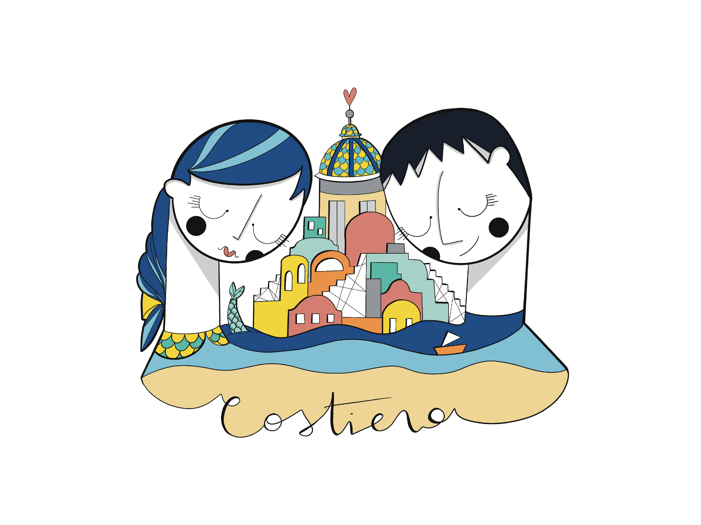 La Divina, come una donna affascinante e selvaggia allo stesso tempo, ci ammalia ogni volta che la incontriamo. Regalando sogni e risvegliando ricordi, ci entra nell’anima. Ed è proprio l’anima di questi luoghi a diventare protagonista delle illustrazioni. Nasce così la personificazione dei borghi, ognuno con le proprie caratteristiche, come fossero personaggi che aspettano solo di accoglierci per raccontarci la loro storia. Un invito a una passeggiata che parte da Vietri sul Mare, intenta a dipingersi i capelli, a Positano, con la sua coda da sirena, passando per Scala, dai lunghi capelli grigi, perché la più antica.