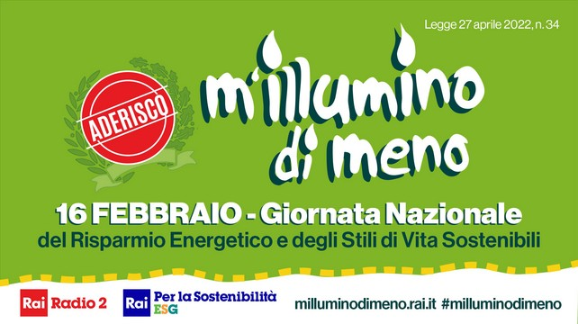 Quest’anno l’iniziativa, giunta alla 19aedizione, avrà luogo giovedì 16 febbraio, in occasione della Giornata del Risparmio energetico e degli Stili di vita sostenibili, istituita lo scorso anno dal Parlamento italiano con la conversione del Decreto Legge n. 17/2022, al fine di promuovere la cultura del risparmio energetico e del risparmio di risorse mediante la riduzione degli sprechi, la messa in atto di azioni di condivisione e la diffusione di stili di vita sostenibili, tanto più urgenti e necessari in questo momento storico.