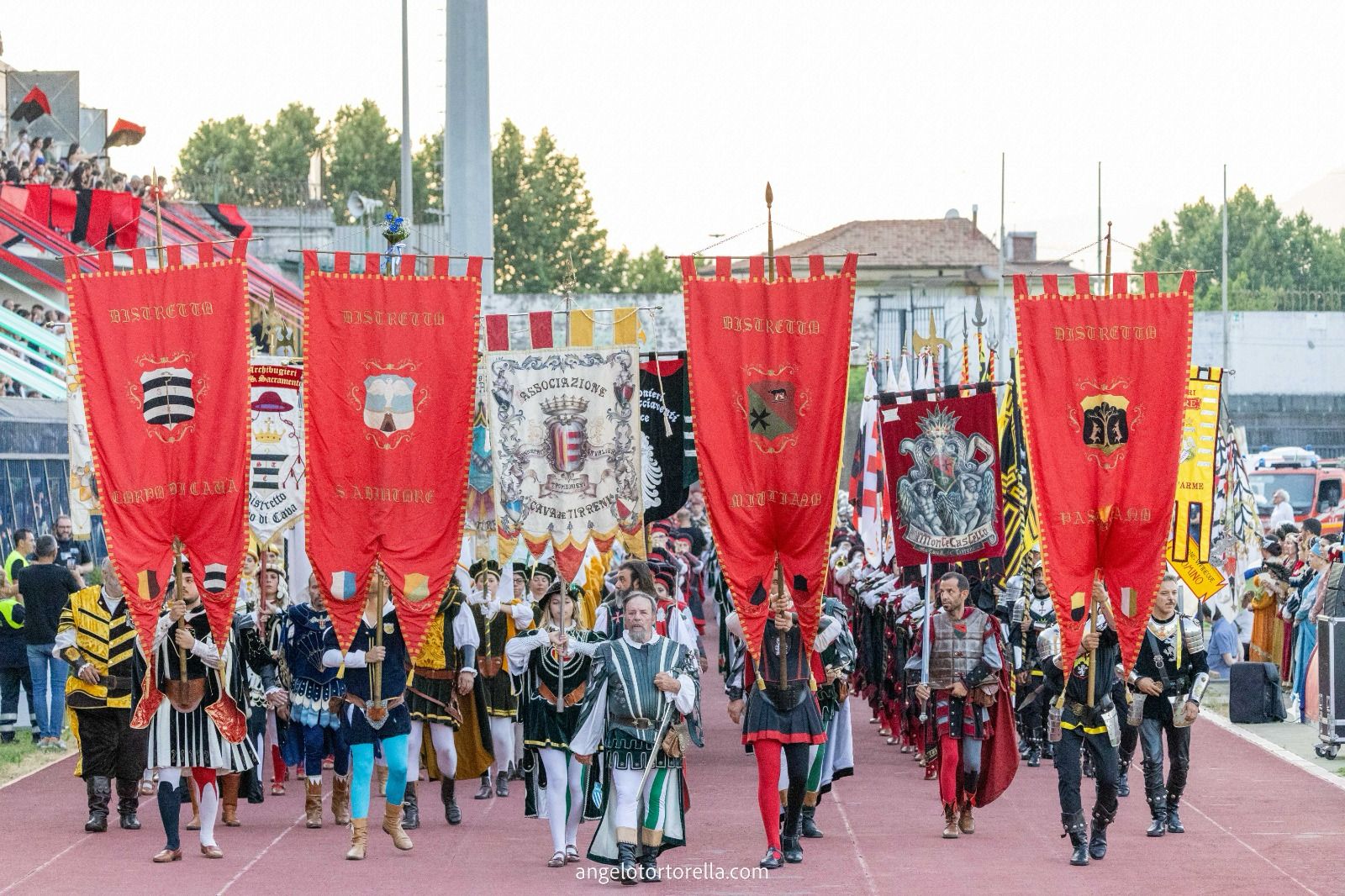 Una folla entusiasta allo stadio comunale “Simonetta Lamberti” ha tifato per i colori dei propri casali in modo fantastico e passionale, facendo da cornice alla manifestazione realizzata dall’Associazione Trombonieri Sbandieratori e Cavalieri di Cava de’ Tirreni con il patrocinio di Comune di Cava de’ Tirreni, Regione Campania, Provincia di Salerno, Ministero della Cultura, ENIT Spa e Centro Studi per la Storia di Cava de’ Tirreni.