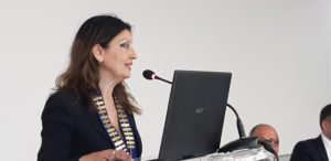 La dottoressa Carla Sabatella ha spiegato il significato del suo motto:” Il Rotary connette idee, persone. Importante non è ciò che facciamo, ma quanto amore mettiamo in ciò che facciamo” e annunciato alcuni dei progetti che intende realizzare:” Il Banco farmaceutico, che consentirà di far arrivare farmaci da banco alle diverse associazioni di volontariato per poi destinarle alle comunità disagiate; piccoli interventi di ristrutturazione all’interno del centro psichiatrico di Via Bastioni; insieme ai giovani rotariani dell’Interact e del Rotaract vorrei organizzare, nelle scuole, degli incontri formativi sulle dipendenze dei giovani: tabagismo, alcool, anoressia/bulimia e tossicodipendenze. Sempre ai ragazzi sarà dedicato il progetto di tutela dell’ambiente. Vorrei che il mio anno rotariano fosse un vento forte di maestrale che scuotesse le coscienze della gente e di noi tutti, nell’intento di lasciare ai nostri figli un mondo migliore”. La dottoressa Sabatella ha presentato i componenti del nuovo Consiglio Direttivo: Vicepresidente, Ferdinando Spirito; Past President, Roberto Napoli; ; Presidente Incoming, Antonio Vicidomini; Segretario, Giuseppe Giannattasio; Segretario Esecutivo, Walter Iannizzaro,; Tesoriere, Vincenzo Fucci; Prefetto, Rosario Landi. Consiglieri: Antonello Sada, Raffaele Tesauro, Rocco Di Riso, Vincenzo Capuano. A portare il saluto dei Governatori: l’uscente Salvatore Iovieno e l’entrante Pasquale Verre sono stati gli Assistenti dei Governatori, Andrea Di Lieto e Gigliola Pessolano.