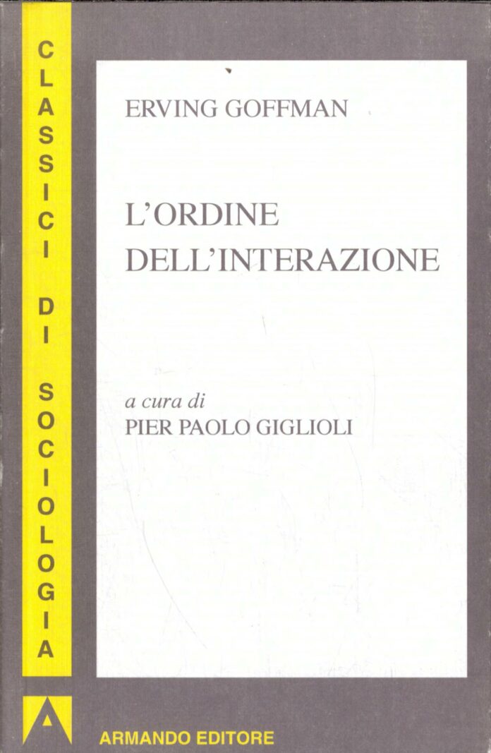 Erving Goffman in occasione del Congresso del 1982 dell’American Sociological Association, aveva preparato un discorso, che non riuscì a pronunciare per il sopraggiungere della malattia che lo porterà alla morte, sull’interazione faccia a faccia, sulla reciproca co-presenza, identificando forme, strutture e processi, cercando di offrire una sintesi del suo pensiero. Quel testo fu pubblicato nel 1983; in Italia apparve nel 1998, a cura di Pier Paolo Giglioli, che si era già occupato di Goffman. (1)
