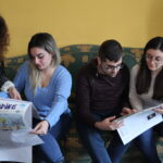 Attraverso l’ormai familiare ed inconfondibile stile grafico, e grazie alle consuete approfondite ricerche svolte dal Centro Studi e Ricerche Radici, il Calendario 2024 arricchisce lo studio del territorio di Montesano sulla Marcellana portando sotto i riflettori la raccolta e la macinazione delle olive. Vengono presi in esame i luoghi nei quali erano messe a dimora le piante di ulivo e le operazioni di raccolta dei frutti. Le raccoglitrici, un tempo solo donne, per questa occasione indossavano i pantaloni dei fratelli e dei padri (se ancora ragazze) o dei mariti (se sposate). Di sera si dedicavano alla cernita “cù cirnicchy”, per separare le olive dalle foglie, e alla fine le deponevano nei sacchi, pronte per la macerazione.