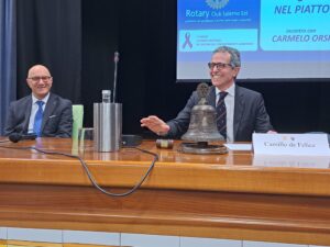 Il dottor Orsi ha notato che, soprattutto dopo il periodo del Covid, è aumentata la consapevolezza nelle persone che spesso ricorrono al nutrizionista:” Bisogna affidarsi ad un esperto e non a internet e fare da sé: possiamo procurarci dei danni”. Il dottor Orsi ha ricordato alcune malattie metaboliche:” Provocate spesso dall’uso di alimenti prodotti industrialmente, contenenti conservanti, coloranti, esaltatori di sapori ed altro”. Il dottor Orsi ha spiegato il concetto di salute:” È uno stato di benessere fisico, mentale, energetico e sociale. Già Ippocrate, che è stato il primo medico della storia umana, ha parlato di prevenzione dicendo:” Fa che il cibo sia la tua medicina e che la medicina sia il tuo cibo”, un concetto che è ancora valido. Oggi, rispetto al passato, abbiamo tanta disponibilità di cibo e la nostra dieta è ipercalorica: nella nostra terra l’epidemiologo e biologo statunitense Ancel Keys ha studiato la Dieta Mediterranea che è diventata patrimonio dell’UNESCO e noi invece di seguirla, ci siamo americanizzati”. Orsi ha parlato anche di obesità e spiegato che per capire che stiamo seguendo un’alimentazione non corretta è sufficiente misurare il nostro girovita:” Per le donne non deve superare gli 88/90 centimetri, mentre negli uomini non deve superare i 98/100 centimetri”. Orsi ha spiegato che con dei comportamenti alimentari scorretti possiamo avere: “L’ipertensione arteriosa che può provocare cardiopatie, ictus; possiamo arrivare ad avere il diabete mellito di tipo 2, l’aumento dei trigliceridi, del colesterolo, dell’omocisteina; possiamo arrivare alla sindrome dismetabolica. Secondo degli studi effettuati, se il nostro indice di Massa Corporea è maggiore di 25 diminuisce la nostra aspettativa di vita: se arriviamo a un indice di 28 diminuisce di qualche mese, se arriviamo a 30 diminuisce di un anno, se arriviamo a 38/ 40 arriviamo a ridurre la nostra aspettativa di vita di ben otto anni, se facciamo una giusta prevenzione alimentare possiamo ridurre le patologie e anche la spesa sanitaria del nostro Paese”. Il nutrizionista rotariano ha spiegato che l’alimentazione consapevole consiste nello scegliere un alimento invece di un altro:” Bisogna variare: mangiare a km 0, utilizzando prodotti del territorio; usare pochissimo sale e zucchero; importante anche la stagionalità dei prodotti. Bisogna bere non meno di un litro di acqua al giorno”. Importante per il dottor Orsi è anche passare dal concetto di caloria al concetto di molecola:” I nutrienti sono molecole che impattano negativamente anche sul nostro DNA”. Orsi si è soffermato a parlare anche della masticazione:” È Importante il tempo della masticazione: non bisogna mangiare velocemente, ma è fondamentale masticare a lungo per non far arrivare pezzi più grandi di mezzo millimetro di cibo allo stomaco che altrimenti deve fare un grosso lavoro”. Soprattutto è importante per il dottor Carmelo Orsi:” Mangiare a colori! Ogni colore è in relazione ad alcune sostanze specifiche a cui è attribuita un’azione protettiva dell’organismo e favorevole ad una buona salute”.