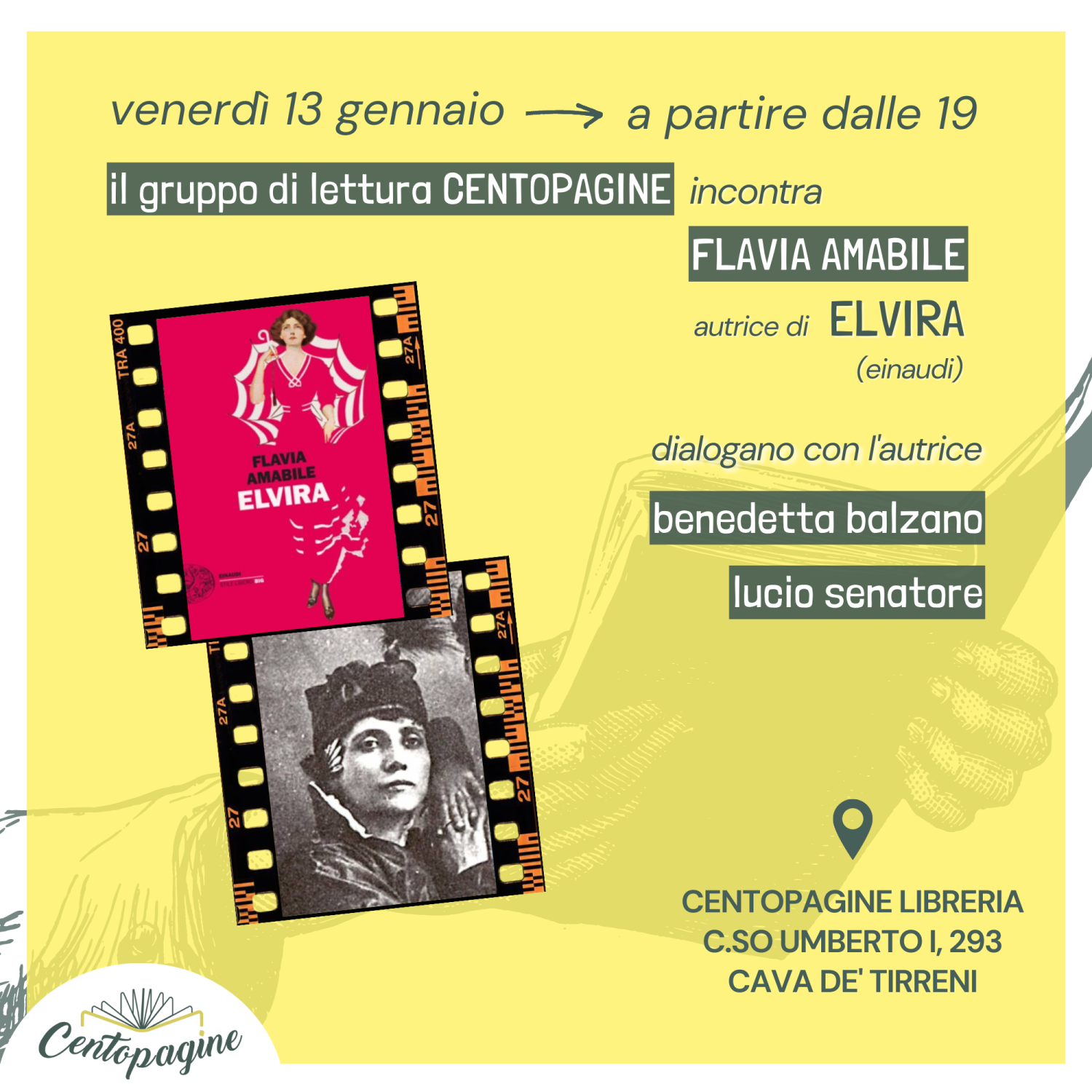 Venerdì 13 gennaio, a partire dalle ore 19 presso Centopagine Libreria a Cava de’ Tirreni, il gruppo di lettura “Centopagine” incontra Flavia Amabile, autrice di “Elvira”.