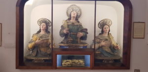 ” I Santi Martiri Salernitani: Ante, Fortunato e Caio, i cui busti argentei sono stati realizzati all’inizio del 1700, che tradizionalmente aprono la processione, non sono realmente le “Tre Sorelle”, come vengono chiamate dal popolo per i loro volti dai lineamenti dolci e per i capelli lunghi; le vere sorelle sono le tre sante :Tecla, Archelaide (o Archelaa) e Susanna, i cui busti lignei, realizzati nel 1697 dallo scultore Matteo Fumo, sono esposti nel vestibolo dell chiesa di San Giorgio in Via Duomo. Fino al 1799 uscivano in processione”.