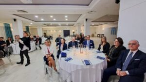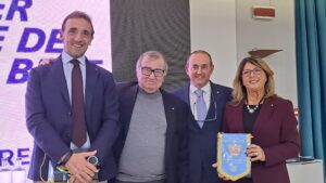 “La nostra storia è iniziata con papà, Romolo Mazza, e mamma, Grazia Palo, originari di Sieti, un paesino situato nel Comune di Giffoni Sei Casali. Si trasferirono a Salerno e nel 1967 fondarono la “Pasticceria Romolo”. Io e le mie sorelle Carmen e Ilaria rappresentiamo la seconda generazione di questa azienda familiare che ha la sua sede vicino alla stazione di Salerno, su Corso Garibaldi. Stiamo cercando di migliorare ciò che ci ha tramandato nostro padre nel rispetto dei suoi valori: papà ci ha insegnato prima di tutto ad essere onesti con tutti”. Intervistato dal giornalista Gabriele Bojano, durante l’incontro organizzato all’Hotel Mediterranea dal “Rotary Club Salerno Picentia”, presieduto dal dottor Lucio Bojano, Remo Mazza ha raccontato 58 anni di storia della “Pasticceria Romolo” che ha sempre legato tradizione e innovazione: “Non si può pensare di mangiare un dolce tradizionale utilizzando sempre gli stessi ingredienti, le stesse quantità di zuccheri: le abitudini alimentari sono cambiate, ci sono anche varie intolleranze che prima non si conoscevano, e quindi anche la tradizione si deve innovare per andare incontro a tutti, rispondere alle nuove esigenze dei consumatori” , ha spiegato Remo Mazza che sin da bambino ha respirato l’aria del forno della pasticceria:” Quando uscivo da scuola, e soprattutto durante le vacanze estive, ho sempre aiutato papà e mamma in pasticceria. È una passione che mi è entrata dentro nel corso degli anni”. Remo ha raccontato che tanti sono stati i Vip che sono entrati a comprare i dolci della “Pasticceria Romolo”:” Una sera il Direttore del “Teatro Verdi” venne da noi con il Maestro Ennio Morricone, di cui papà era un fan: fu per lui una grande emozione”. Secondo Remo Mazza tra i dolci preferiti dai salernitani c’è la sfogliatella:” Senza dimenticare tutti i dolci della tradizione salernitana come la pastiera di grano che ormai facciamo tutto l’anno, anche d’estate, perché tanti turisti ce la chiedono. La prepariamo con gli ingredienti tradizionali dosati con equilibrio: uova in guscio; grano secco, che mettiamo a mollo e che il giorno dopo viene cotto; zucchero; ricotta di pecora; poco fior d’arancio e la scorzetta candita. L’ingrediente fondamentale però è la pazienza e l’amore per questo dolce”. Remo Mazza, che ha vinto numerosi premi nel campo dolciario, con i suoi cioccolatini ha vinto due premi: a Perugia, nell’ambito dell’Eurochocolate, e a Rimini, in occasione della “Fiera Nazionale dei Pasticceri”. Cioccolatini che ha fatto degustare a tutti i presenti: “La Coccarda”, a base di nocciola tostata, caramellata, che rievoca il croccante, un torrone alla nocciola tipico dei Picentini, che abbiamo rivisitato in chiave moderna realizzato con le nocciole provenienti da Prepezzano; il cioccolatino innovativo, “Dolce Incontro”, con il quale, nel 2004, ho vinto il primo premio a Perugia, nel concorso organizzato dalla “Perugina” nell’ambito dell’Eurochocolate di Perugia, a base di una morbida crema ganache di cioccolato al latte o fondente, abbinata ad un crema ganache al lampone. Nel solco della tradizione proponiamo anche una torta di castagne che è un classico della nostra pasticceria, e la famosa “Venere nera” che realizzai quando avevo solo 19 anni: fui ispirato dalla modella Naomi Campbell che era soprannominata “La Venere Nera”. E ‘una torta che fa parte della nostra tradizione e che all’epoca in cui la proponemmo rappresentò una innovazione pasticcera”. Durante la serata sono stati presentati tre nuovi soci del Club: l’architetto Maddalena Pezzotti, presentata dal Presidente Lucio Bojano; il dottor Alberto Gulletta, tornato al Club dopo un po’ di tempo, che è stato presentato dal Past President Walter Iannizzaro, e il dottor Sabatino Giordano, che è stato presentato dal Past President Antonello Sada.