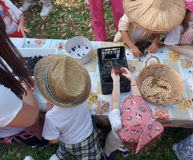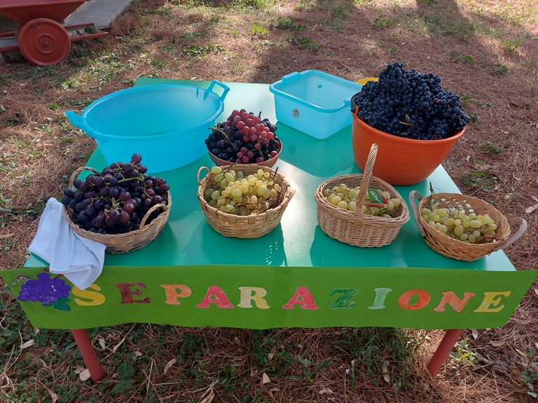 “L’idea è nata dal desiderio di dare la possibilità ai bambini – sottolinea la Coordinatrice del Plesso Alfonsina Romano – di far vivere una esperienza pratica di ogni momento che costituisce il processo che porta al prodotto finito che, nella maggior parte dei casi, è l’unica cosa di cui si ha vera consapevolezza”. Raccolta, separazione, pigiatura nei tini e imbottigliamento fino all’assaggio del succo d’uva, dunque, le fasi in cui i bambini sono stati coinvolti direttamente, imparando a distinguere ad esempio il raspo dagli acini e la polpa dai vinaccioli, un modo quindi per apprendere divertendosi, per condividere la conoscenza e soprattutto per scoprire tutto ciò che porta alla realizzazione del vino che occupa un posto così importante nella nostra cultura, storia ed economia. Questa attività, infatti, si inserisce in un percorso didattico più ampio, che si snoderà nel corso di tutto l’anno scolastico, volto ad avvicinare i piccoli alunni alle tradizioni, alla cultura contadina, all’avvicendarsi delle stagioni, al valore del tempo e a tutto ciò che ruota attorno alle nostre eccellenze enogastronomiche.