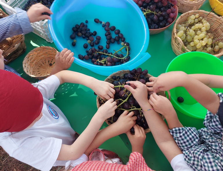 Quarantotto bambini di quattro anni di età sono stati stamattina i piccoli emozionati protagonisti di una giornata dedicata alla vendemmia, una iniziativa ideata e promossa dalla scuola dell’infanzia, Plesso di via Lazio, dell’Istituto Comprensivo Statale “G. Marconi” di Battipaglia. Si sono muniti di grembiulini, bandane, cappellini e cesti i piccoli vigneron che con entusiasmo hanno partecipato a tutte le fasi di una colorata e divertente vendemmia sotto la guida attenta degli insegnanti e alla presenza del Dirigente Scolastico dott.ssa Giacomina Capuano e dei genitori.