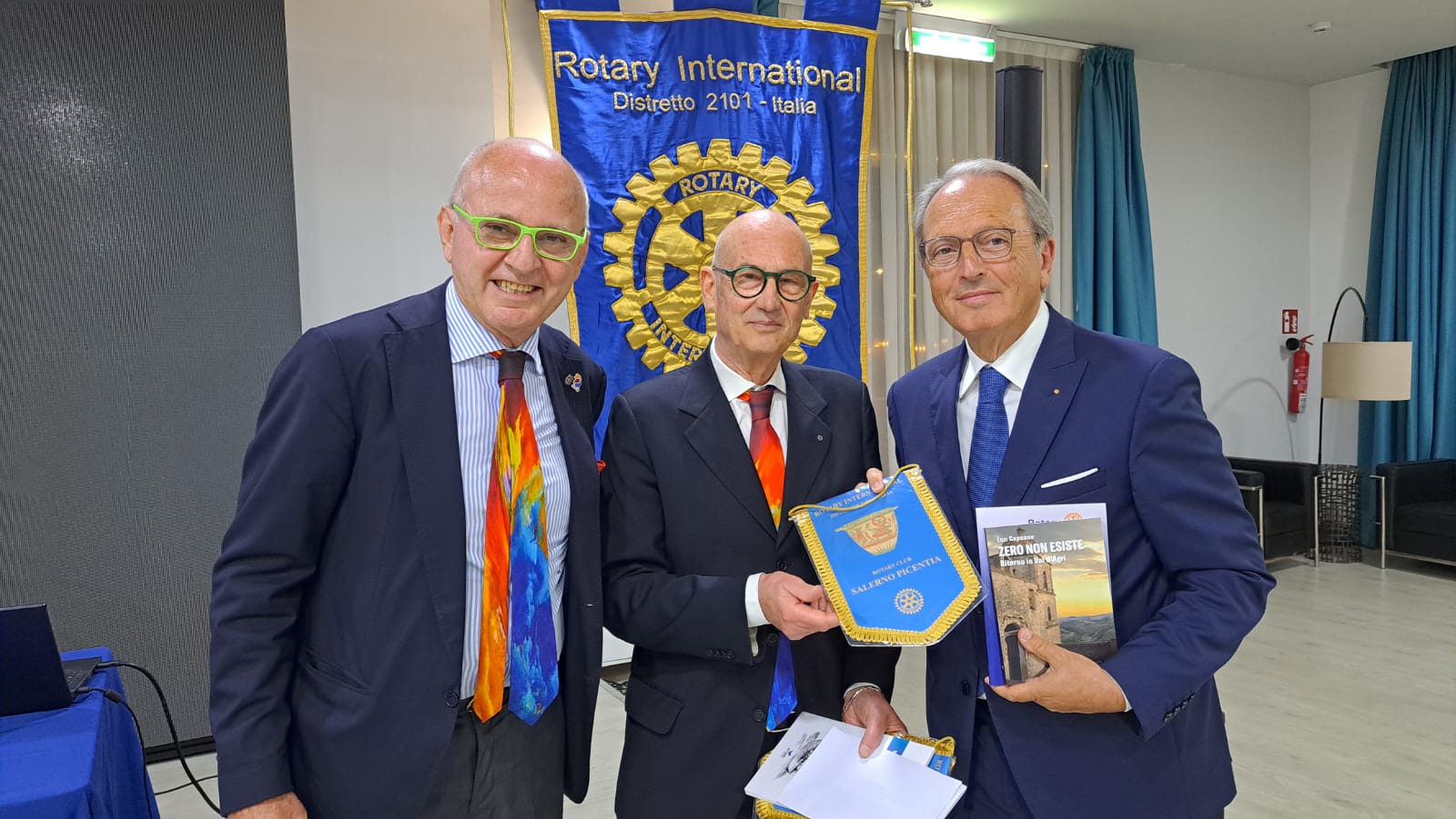 L’Onorevole Alfonso Andria, presidente del “Centro Universitario Europeo per i Beni Culturali” di Ravello, da rotariano rivolto ad un pubblico di rotariani, ha trattato il tema de “L’Altro”, affidatogli dal presidente Capuano, in modo profondo e articolato, sottolineando l’importanza della persona:” A cui restituire la centralità che merita, oggi più di ieri, mentre gravissimi rischi di ogni genere suscitano fondata preoccupazione nei singoli, nelle famiglie, nelle comunità dentro e fuori il Paese: la persona come “l’altro” da me, la persona svantaggiata, oppressa, immigrata, prigioniera, sofferente, indigente; la persona sempre più isolata, sempre più sola!” Il Presidente Andria ha richiamato anche le lettere encicliche di Papa Francesco:” Laudato si’, sulla cura della casa comune: la Terra, del 2015, e “Fratelli tutti”, sulla fraternità, l’uguaglianza e l’amicizia sociale, del 2020. “Cos’è la vera inclusione se non nasce da un’idea di relazione? E cos’è la democrazia se non relazione inclusiva delle differenze senza pretese ‘a priori’ di fusione o primazie? La guerra, le guerre, le quotidiane stragi di innocenti, la cancellazione del patrimonio culturale materiale e immateriale, della memoria individuale e collettiva. La cancellazione del futuro!” L’onorevole Andria, commosso, ha ricordato quel bambino di tre anni, Aylan Kurdi, trovato morto con una maglietta rossa, i pantaloncini e le scarpette ancora ai piedi, sulla spiaggia di Bodrum, in Turchia:” Uno spettacolo straziante che rappresenta l’inizio della fine. Questo bambino rappresenta il simbolo del dramma dei migranti, molti dei quali sono nei fondali del nostro mare”. Andria ha concluso la sua conversazione parlando di comunità umana e di solidarietà, leggendo poi poche righe del libro “Le parole per dirlo” scritto ‘in limine mortis’ da Franco Di Mare: “Ancora oggi ci confermiamo comunità umana ogni volta che riusciamo a leggere il bisogno negli occhi di un altro e lo aiutiamo a sottrarsi alla propria assenza.” Durante la serata è stato presentato, dal Past President Antonello Sada, un nuovo socio del Club, l’avvocato Nino Nigro. Le conclusioni sono state affidate al Governatore del “Distretto Rotary 2101”, Ugo Oliviero, che, insieme all’Assistente Tony Ardito, ha consegnato al presidente Capuano una Paul Harris per il lavoro svolto durante l’anno:” E’ stato il presidente di un Club molto attivo che ha realizzato progetti importanti sia per le comunità locali, sia per quelle internazionali: Enzo Capuano ha risposto in pieno sia al motto del Presidente Internazionale Gordon R. McInally “Creiamo speranza nel mondo”, sia a quello che è stato il mio motto ” Il Rotary delle Comunità”: Comunità intese come aggregazioni solidali di persone intorno ad un ideale; insieme di persone unite al territorio, dalla lingua, dalla storia comune, che hanno comunione di vita sociale e condividono gli stessi comportamenti ed interessi, che professano la medesima confessione religiosa. Il Rotary deve essere espressione delle Comunità e recepirne i bisogni. Tutti noi crediamo in un mondo dove i popoli, insieme, promuovano cambiamenti positivi e duraturi nelle comunità vicine, in quelle lontane, in ognuno di noi. Dobbiamo operare insieme per rendere sempre di più il Rotary un’organizzazione aperta ed inclusiva”.