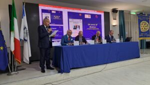 “Se tante formiche si mettono d’accordo, possono spostare un elefante” con questo antico proverbio del Burkina Faso ricordato dal dottor Vincenzo Capuano, presidente del “Rotary Club Salerno Picentia”, è iniziata la serata organizzata all’Hotel Mediterranea di Salerno per ricordare i tanti progetti realizzati dal Club rotariano durante l’anno sociale come il progetto “Hope Garden” che, con un investimento distrettuale di ventimila euro sta portando a termine la realizzazione di un sistema Agro-Silvo-Pastorale in Burkina Faso, uno dei paesi più poveri al mondo, nel villaggio di Niaogo, caratterizzato dall’integrazione degli alberi da frutto con la produzione di foraggio e bestiame:” Tale sistema ha il potenziale di aumentare sensibilmente la produzione agricola sul lungo periodo. In una vasta area di oltre cinquecento metri quadri, recintata, stiamo installando una grande cisterna di acqua, piantando una notevole quantità di alberi, una coltivazione di verdure e un allevamento di animali” ha spiegato Capuano che ha ricordato anche un altro importante progetto:” Voci dall’universo minorile”, organizzato presso la chiesa di Sant’Eustachio dal “Rotary Club Salerno Picentia”, in collaborazione con il Magistrato Minorile Antonella Troisi e con gli altri Club Rotary cittadini , che ha visto protagonisti circa cinquanta bambini e ragazzi fino ai 18 anni che hanno recitato poesie, danzato, cantato, presentato i loro disegni e dei video realizzati con l’aiuto degli operatori, nei quali hanno raccontato , con nomi di fantasia, le loro tragiche storie ,commuovendo ed emozionando i tanti presenti:” Storie di maltrattamenti, di violenze, di abbandoni, esperienze traumatiche vissute da alcuni ragazzi che spesso vivono in contesti familiari di estrema povertà. C’è poca attenzione sull’infanzia e noi abbiamo voluto lanciare un messaggio: quello di prestare attenzione a questo mondo, a sostenere e prendersi cura di questi bambini, di questi ragazzi. È fondamentale dare ascolto alle voci che ci circondano. Essere sordi alle voci del prossimo fa di noi uomini isolati e poco utili alla comunità” ha spiegato Capuano che ha ricordato anche l’organizzazione della XIX edizione del “Premio Carmine Sica”, dedicato al professore di Matematica Applicata alla Finanza e alle Assicurazioni, nelle Università: “Federico II” e “Parthenope”di Napoli e di Salerno; socio fondatore e primo Presidente del “Rotary Club Salerno Picentia”, vinto quest’anno dal ventiquattrenne dottore napoletano Raffaele Clemente Petrella, per la sua tesi di laurea intitolata “Misurazione e Controllo del Rischio di Longevità :Sfide ed Opportunità” con la quale si è laureato in “Scienze Statistiche, Attuariali e Finanziarie” presso l’Università Parthenope di Napoli. Il dottor Capuano ha ricordato la donazione di un apparecchio audiometrico per la rilevazione precoce dei difetti uditivi nel neonato, al Reparto di Neonatologia dell’Azienda Ospedaliera di Salerno, diretto dalla dottoressa Maria Grazia Corbo, grazie all’impegno e al sostegno dei soci Giuseppe Pizzuti e Roberto Napoli, e anche il convegno organizzato nella “Sala del Consiglio” della Provincia di Salerno in interclub con i Club rotariani salernitani per analizzare i vari aspetti della salute e le nuove sfide sociali, fisiche ed emotive per la salute. Il dottor Capuano ha ricordato, inoltre, i tanti progetti realizzati insieme agli altri Club Rotary salernitani i cui presidenti erano presenti in sala, presentati dal segretario Raffaele Tesauro Olivieri: Umberto Maria Cioffi (Rotary Salerno), Sabato Cuozzo (Salerno Duomo), Camillo De Felice (Salerno Est), Antonino Sessa (Salerno Nord dei Due Principati), Ugo Sorrentino (Rotary Cava de’ Tirreni). Il motto di quest’anno è “Fare Insieme” e noi abbiamo provato a farlo. Il presidente Capuano ha consegnato una Paul Harris, il più ambito riconoscimento del Rotary, alla dottoressa Rosalba Leo e all’artista Rosa Cuccurullo per il contributo da loro dato per la realizzazione dei progetti realizzati in Burkina Faso.