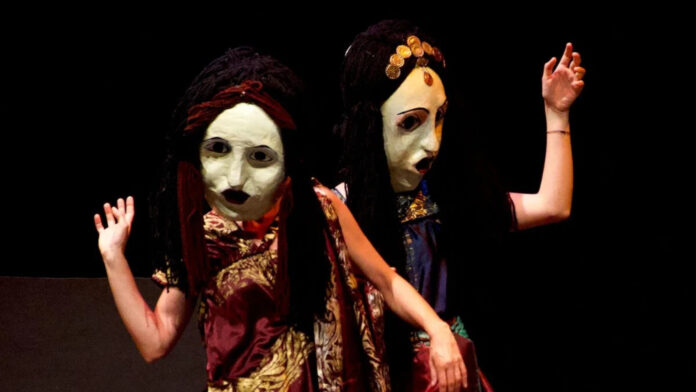 Fondamentale l’uso delle maschere che si rifanno ai modelli originali ritrovati nella necropoli di Lipari. A loro spetta il ruolo di creare l’imprevisto effetto comico dovuto alla loro complementarietà rispetto alla parola, cioè di mettere in una prospettiva critica, con effetto parodistico, ciò che il personaggio dice. Proponiamo uno spettacolo teatrale che non vuole essere la rappresentazione di un reperto “archeologico”, ma che sa divertire mantenendosi attuale e contemporaneo nelle tematiche. Uno spettacolo dove l’attore “anima” la maschera, le dà un’esistenza surrogatoria ma reale, gestendo nel rito teatrale l’anima del personaggio.