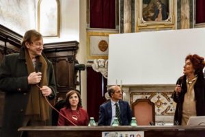 La professoressa Capone ha ricordato i principi del Regimen Sanitatis Salernitanum:” Un testo che ho studiato anche a Londra e a Parigi . Il Regimen Salernitanum conta un numero cospicuo di esemplari: ne esistono 180 edizioni ed io ne ho viste 160 alla British Library di Londra”. Autrice del nuovo libro “Naturalmente Sani. Il Nuovo Regimen della Scuola Medica Salernitana”, edito dall’Associazione EUTòPIA, la professoressa Capone ha spiegato che nel Medioevo il numero perfetto era il quattro:” Come le quattro qualità del corpo umano che compongono l’organismo: il sangue, il flegma , la bile gialla o collera, la bile nera o melanconia. L’eccesso di uno di questi quattro umori fa nascere nel corpo la malattia. La teoria dei quattro umori ,secondo la quale se tutti gli umori sono in equilibrio si ha la sanità al corpo, è stato il vero caposaldo salernitano che ha governato la Medicina dal Medioevo all’Età Moderna, fino a quando, a metà del XIX secolo, il patologo e scienziato tedesco Virchov gettò le basi dei moderni concetti della patologia cellulare e della patogenesi delle malattie”. La professoressa Capone ha spiegato che a Salerno, nonostante fosse vietato, si praticava la vivisezione:” Si praticava per capire quali erano le funzioni del corpo. Tra i primi a farla ,di nascosto, per approfondire i suoi studi di anatomia, fu Leonardo da Vinci ”. La professoressa Capone ha anche spiegato che la medicina era tenuta in grande considerazione tanto da essere definita Secunda Philosophia: ” Nel Medioevo la medicina è una scienza molto complessa con un curriculum di studi intrecciato a molti saperi”. Attraverso delle slide la professoressa Capone ha presentato alcune importanti xilografie che illustravano e spiegavano meglio i contenuti delle varie edizioni del Regimen. Nella sua relazione introduttiva la professoressa Rossella Nicolò, docente di Italiano e Latino presso il Liceo Alfano I di Salerno, ha spiegato che ancora oggi sono valide le applicazioni terapeutiche dei “semplici” le piante officinali utilizzate dai medici della Scuola Medica Salernitana: ” A ncora oggi nei Dipartimenti si studiano i principi attivi delle piante e nelle terapie ne usiamo molti tra cui il taxolo, utilizzato nella chemioterapia antitumorale”. La professoressa Nicolò, ha sottolineato la modernità della Scuola Medica Salernitana:” Testimoniata dalla sua apertura alle donne, alle idee innovative che i trattati conservati dimostrano : la prevenzione risulta essere ancora un aspetto fondamentale della medicina ; si diffondono metodi nuovi ed insoliti, sottolineando l’importanza che l’igiene, l’alimentazione equilibrata e l’attività fisica rivestono per la salute femminile. Non va dimenticato, inoltre, che il trattato di ginecologia attribuito fino ad oggi a Trotula, era un unicum nel medioevo. La Scuola Medica Salernitana ha avuto l’indiscutibile merito storico di innalzare la chirurgia al rango di scienza, sottraendola al degrado di mestiere per stregoni dal momento che questa non veniva considerata una branca della medicina, ma semplicemente un’attività collaterale esercitata senza nessuna nozione scientifica”. Sono intervenuti l’Assessore alla Cultura del Comune di Vietri, Giovanni De Simone; il Presidente del CNA di Salerno, il Maestro ceramista Lucio Ronca, e il professore Giorgio Zanchin, già Direttore della Clinica Neurologica e della Scuola di Specializzazione in Neurologia dell’Università di Padova.(FOTO DI EDOARDO COLACE).