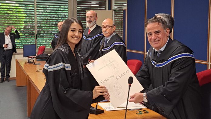 Si è brillantemente laureata in Giurisprudenza la venticinquenne Valentina Palumbo che, ieri mattina, a Fisciano, presso il Dipartimento di Scienze Giuridiche dell’Università di Salerno, ha discusso un’interessante tesi in Esecuzione Penale, con relatore il Chiarissimo Professor Enrico Ranieri. La neodottoressa ha ricevuto i complimenti di tutti i componenti della commissione esaminatrice presieduta dal Professor Luigi Kalb, Ordinario di Procedura Penale. La neolaureata ha ringraziato, emozionata, tutti gli amici e i parenti che hanno voluto condividere con lei la gioia di un giorno veramente speciale. A Valentina gli auguri di un luminoso futuro anche dalla redazione de “La Gazzetta di Salerno”.