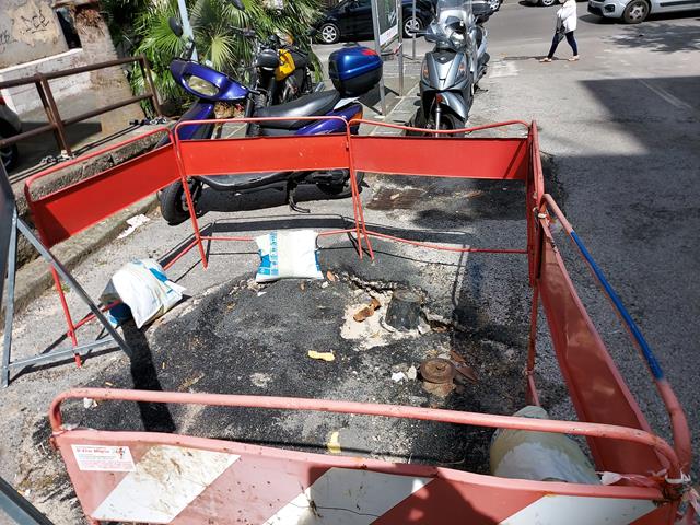 Tali lavori richiedevano lo scavo del manto stradale il quale però, una volta ultimati i lavori, non veniva ripristinato a regola d’arte da Salerno Sistemi, ma veniva abbandonato così come si evidenzia dalle foto.
