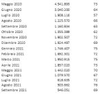 Per quanto attiene ai lavoratori pagati con i titoli del Libretto Famiglia (LF), a settembre 2021 essi risultano circa 12.000, in aumento del 16% rispetto a settembre 2020, l’importo medio mensile lordo della loro remunerazione effettiva risulta pari a 178 euro.