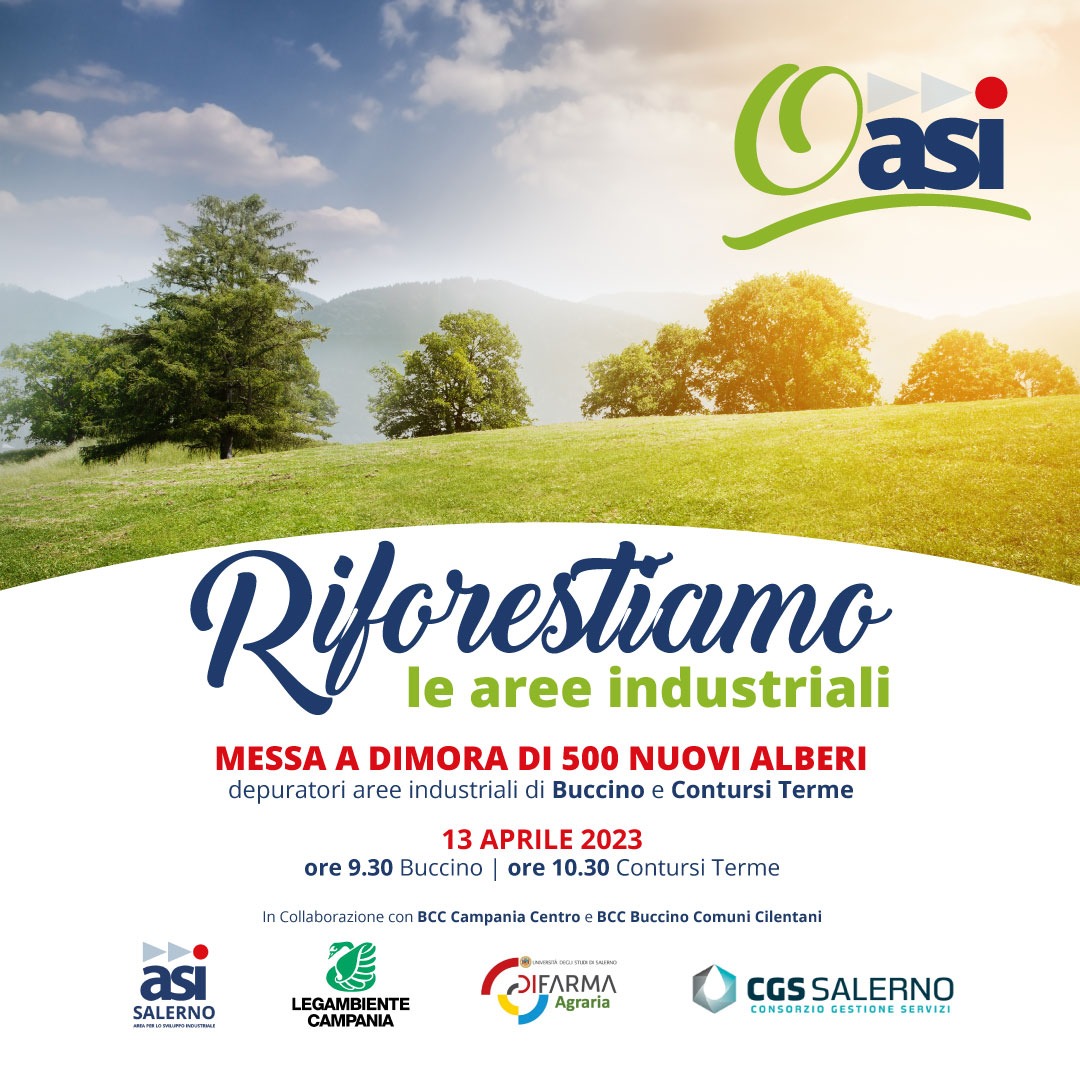 L’iniziativa nata grazie dalla virtuosa collaborazione del Consorzio Asi Salerno con Legambiente Campania, CGS Salerno, Dipartimento di Agraria dell’Università di Salerno e l’Ufficio Foreste della Regione Campania, punta a rigenerare il territorio delle aree industriali della provincia, dando vita a piccoli boschi che mitighino gli effetti dell’inquinamento, migliorando la qualità dell’aria e recuperando contesti degradati.