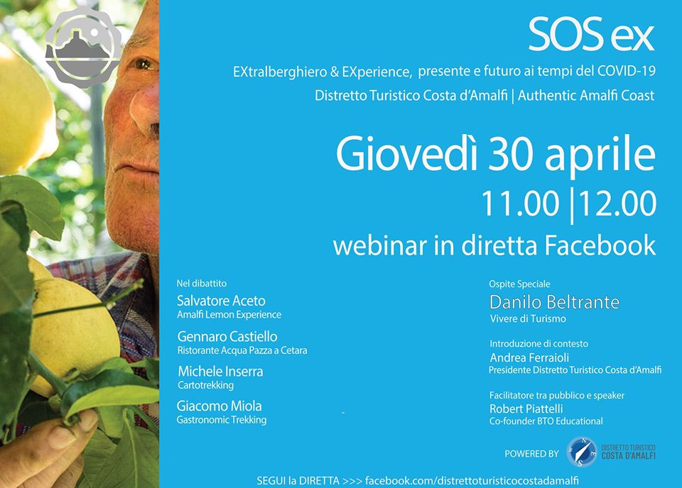 “Siamo subito a lavoro e domani avremo il sesto WeBinar che sarà incentrato sull’extra. Avremo Salvatore Aceto famoso nel mondo con i suoi limoneti, Ci soffermeremo sulle attività extralberghiere – ha proseguito Ferraioli – ma allo stesso tempo anche sul modello del turismo sostenibile. E domani ci soffermeremo sulle opportunità messe in campo per il settore Extra – Alberghiero e del potenziale delle Experience per il comparto turistico nella fase di ripartenza. Nel WeBinar di domani avremo altri ospiti importanti come Giacomo Miola fondatore del trekking gastronomico, avremo un altro esponente importante delle Guide che è Michele Inserra di Cartotrekking, ma anche della ristorazione come Gennaro Castiello di Acqua Pazza ed avremo in collegamento anche Salvatore Aceto per Amalfi Lemon Experience. Ospite speciale sarà Danilo Beltrante che è il fondatore di Vivere di Turismo, una delle startup più innovative per il settore extra-alberghiero e di Locobel, azienda che cura lo sviluppo di vari Brand importanti oltre ad essere il co – fondatore dell’associazione Property Managers Italia”.