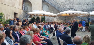 Madrina della manifestazione è stata la dottoressa salernitana Rossella Paliotto, prima donna a essere eletta, dopo 500 anni, Presidente della “Fondazione del Banco di Napoli”: ” Le donne, spesso, per emergere devono sfondare un tetto di cristallo “ ha spiegato la dottoressa Paliotto, che ha ricevuto la medaglia della “Principessa Sichelgaita” e il guidoncino del “Club Principessa Sichelgaita”, dalla Presidente del Club, Elisa Di Peso. Durante la serata è stata consegnata, dal Presidente della Camera di Commercio, l’ingegner Andrea Prete, una “Targa alla Memoria” di una famosa e bellissima pittrice salernitana degli anni ’60, Camilla (detta Milla) Pasca di Magliano. Commossa ha ritirato la targa la figlia, Angela Riccio De Braud. Emozionanti i momenti musicali che hanno impreziosito la serata: La violinista Paola D’Ambrosio ha eseguito la struggente “Hallelujah” di Cohen; Cristina Mazzaccaro ha cantato il famoso brano di Luigi Tenco “Vedrai vedrai”, accompagnata alla chitarra dal Maestro Pierpaolo Molinari; il duo “Claudio De Bartolomeis e Diana Ronca ”, specializzati nella posteggia, ha eseguito “A città e Pulecenella” scendendo tra il pubblico che ha cantato con loro; il tenore Paolo Gloriante, accompagnato al piano dalla Maestra Valentina Bruno, ha cantato la famosa “Granada”; il cantante e chitarrista Mino Remoli ha cantato “Pianefforte ‘e notte” di Salvatore Di Giacomo. Tutti gli artisti sono stati premiati dalle autorità presenti: il dottor Erminio Rinaldi, il dottor Enzo Todaro, il Comandante del Reggimento Guide di Salerno, Giacomo Giannattasio; il dottor Salvo Iavarone; la Presidente di Club Zona 13 Grazia Cioffi Sica; il Giudice Pasquale Andria. Alla fine della serata tutte le socie del “Club Lions Principessa Sichelgaita” e la Presidente Elisa Di Peso, che ha sottolineato il grande impegno profuso dalla dottoressa Emma Ferrante, “E’ l’orgoglio del nostro Club”, hanno consegnato alla stessa una targa di ringraziamento. La dottoressa Ferrante ha poi invitato tutti gli ospiti al ricco buffet organizzato dal responsabile della società di gestione “ Castello Arechi”, Marco De Simone.