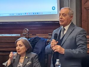 Dodici eccellenze salernitane distintesi nel campo delle arti, della cultura, della scienza, delle professioni, della musica, e dello sport, dando lustro al nostro territorio, sono state premiate martedì sera, presso il “Gran Salone del Genovesi” della Camera di Commercio di Salerno, dai presidenti dei Club Lions della VI Circoscrizione del Distretto Lions 108YA. Premiata dal professor Carlo Sabbarese, presidente del “Lions Club Hippocratica Civitas” la giornalista di Rai1 Vittoriana Abate, da venticinque anni inviata del programma “Porta a Porta”, autrice, scrittrice, opinionista e conduttrice che, emozionata, ha ritirato il premio con animo grato:” Ricevere questo premio dai propri concittadini è una gratificazione che mi riempie di orgoglio: l’appartenenza a questa città mi ha dato tantissimo; quel quid in più di empatia, di intuito, di entusiasmo e di passione che mi viene riconosciuto dagli altri e che mi ha aiutato molto nel mio lavoro”. La giornalista salernitana ha anche annunciato che tra qualche giorno uscirà nelle librerie il suo quinto libro:” È un saggio intitolato” Sulla pelle e nel cuore: quei bravi ragazzi che uccidono” nel quale racconto gli ultimi casi di femminicidio, come quello di Giulia Cecchettin, che nascono da relazioni malate”. Per il dottor Roberto Della Casa, presidente del “Lions Club Salerno Host”, è stato il Vice Presidente, il dottor Aldo De Vita, a premiare l’ingegner Andrea Prete, Presidente della Camera di Commercio di Salerno e di Unioncamere che da anni rappresenta il mondo economico della Provincia di Salerno. Il Presidente Prete, da padrone di casa, ha salutato tutti i presenti e, come augurio per il nuovo anno, confermato che a luglio del 2024 partiranno i primi voli dall’Aeroporto di Salerno -Pontecagnano:” L’apertura dell’aeroporto contribuirà a far crescere tutti i settori economici del nostro territorio”. L’avvocato Fabio Mammone, presidente del “Lions Club Salerno Duomo”, ha premiato il professor Giuseppe Acocella, Professore Emerito, già Ordinario di Filosofia del Diritto dell’Università Federico II di Napoli, Magnifico Rettore dell’Università “Giustino Fortunato” di Benevento, che è sempre stato un riferimento culturale importante per la nostra città:” Non mi sono mai fatto da parte: sono stato anche Consigliere Comunale. Un premio per me inatteso: si fanno le cose senza aspettarsi riconoscimenti; quando però arrivano sono sempre una piacevole sorpresa. Ringrazio i Club Lions che hanno una particolare specialità: quella di conservare, in un mondo confuso, il principio della competenza, della professionalità”. A ritirare il premio per il Cavaliere del Lavoro Agostino Gallozzi, Presidente e Amministratore Delegato di “Gallozzi Group Spa” e presidente del “Porto Marina d’Arechi”, assente per motivi familiari, è stata l’avvocato Sonia Gaudiosi, Vice Presidente del “Lions Club Salerno Arechi”, presieduto dalla dottoressa Emilia Nicolais, che ha letto la motivazione del premio. E’ stato il dottor Cosimo Di Filippo, presidente del “Lions Club Salerno 2000” a premiare il professor Ernesto Reverchon, Ordinario di Impianti Chimici presso il Dipartimento di Ingegneria Industriale dell’Università di Salerno, tra i primi 20 studiosi del mondo classificati per la produzione scientifica nella categoria Ingegneria Chimica, che ha sviluppato un nuovo processo per la produzione su larga scala di nano-liposomi e nano-polimersomi, per la somministrazione controllata di farmaci antitumorali, proteine e in generale di molecole biologicamente attive:” Liposomi nei quali è stato racchiuso l’RNA messaggero che è servito per produrre i vaccini anti COVID – 19”. Lo scienziato salernitano ha anche lavorato ai processi utilizzati per usare solventi non inquinanti per produrre caffè decaffeinato, a quelli utilizzati per trasformare in polvere i fanghi inquinanti prodotti dalla lavorazione del silicio utilizzato per fare i microprocessori e le basi per le celle solari:” Adesso stiamo lavorando allo sviluppo di nuovi liposomi per applicazioni future come i vaccini per i tumori”. Il dottor Annibale Pancrazio, socio del Club Lions Cava- Vietri, presieduto dall’avvocato Francesco Accarino, ha premiato l’imprenditore Michelangelo Morlicchio, Cavaliere del Lavoro, fondatore e Amministratore Delegato del gruppo Tecnocap” che ha la sua sede principale nel Comune di Cava De’ Tirreni, specialista nella produzione industriale di imballaggi in metallo:” Bottiglie e bombole aerosol in alluminio largamente utilizzati per il confezionamento di prodotti alimentari, di bevande, alcolici e nei settori della cosmetica, della nutraceutica e della farmaceutica. Siamo il secondo produttore al mondo di questo tipo di prodotti, abbiamo dieci siti produttivi e siamo presenti in oltre cento Paesi nel mondo”. La dottoressa Grazia Cioffi, presidente del “Lions Club Salerno Principessa Sichelgaita”, ha premiato il professor Jacopo Mele, di Fisciano, CEO di Moonstone, che nel 2018 Forbes ha incluso nella lista dei 100 under 30, leader del futuro per la categoria “Enterprise Technology”. La sua società supporta chi fa ricerca in varie tecnologie di avanguardia e crea nuove start- up:” Abbiamo investito su una tecnologia Wi-Fi che crea connettività sotto i mari, fino a tre chilometri di profondità, o anche in una tecnologia che stocca la CO2 per centomila anni, e anche su una terapia digitale per l’Alzheimer e su un calcestruzzo che si autoripara con la pioggia”. Per il “Lions Club San Valentino Sarnica Gens”, presieduto dal dottor Carmine Cuomo, è stato il dottor Pasquale Ferrante a premiare l’imprenditrice Stefania Cuomo, punto di forza dell’azienda di famiglia, specializzata nella progettazione e produzione di macchinari per l’industria conserviera e dell’imballaggio metallico, presente in quattro continenti da ben 60 anni:” Siamo un’aziend
