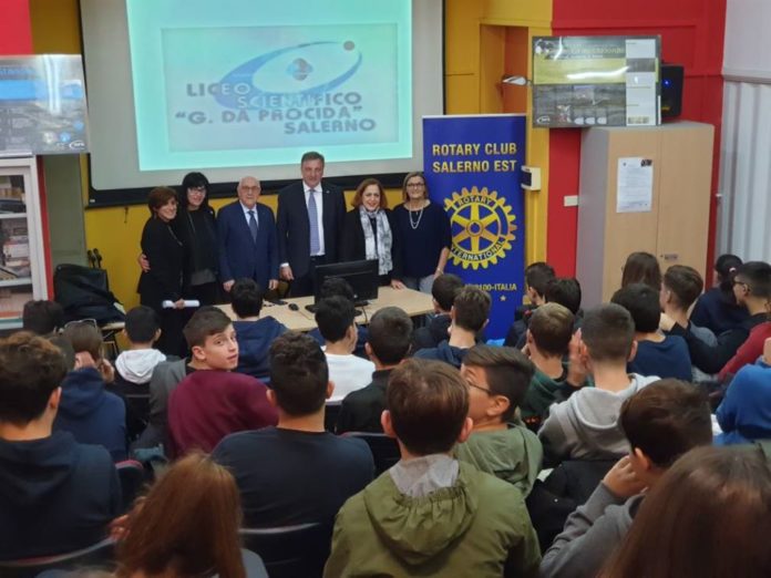 “Conosci Te stesso…proteggi Te stesso: Le Malattie Sessualmente Trasmesse ” è stato il tema dell’incontro di formazione tenutosi al “Liceo Scientifico Da Procida di Salerno”, diretto dalla professoressa Anna Laura Giannantonio, organizzato dal “Rotary Club Salerno” Est, presieduto dal dottor Carmine Nobile. Il socio e Past President del Club rotariano, il dottor Antonio Brando , Medico Chirurgo, Specialista in Urologia, ha spiegato, in modo semplice, ad oltre sessanta alunni delle prime classi del liceo scientifico ” Da Procida “, coordinati e guidati dalle docenti Di Florio e Sessa , quelle che sono le Malattie Sessualmente Trasmissibili:” Sono argomenti di estrema attualità , in quanto priorità assoluta per l’ Organizzazione Mondiale della Sanità” ha sottolineato il dottor Brando che ha spiegato quanto sia importante informare per formare:” Soprattutto ricordare a ciascuno di questi ragazzi la necessità di rispettare il prossimo proteggendosi”. Il dottor Brando ha parlato anche della Fertilità che nel terzo millennio si è ridotta:” Fenomeni come “La Terra dei Fuochi” e quello dell’ILVA di Taranto, hanno determinato una riduzione della riserva ovarica. Anche la percentuale di spermatozoi del maschio si è ridotta dagli 80 milioni degli inizi del ‘900 ai 15 milioni di oggi”. Il dottor Brando ha anche spiegato che la nostra società sta diventando sempre più vecchia e che :” A causa di stili di vita inappropriati siamo i primi ad essere campioni europei di obesità infantile e gli ultimi ad usare la contraccezione. Bisogna usare il condom e la pillola anticoncezionale per evitare il rischio di malattie sessualmente trasmissibili che colpiscono i due terzi dei giovani al di sotto dei venticinque anni, soprattutto per la scarsa conoscenza, per la promiscuità dei rapporti e per la scarsa igiene. E’ nostro dovere essere accanto ai giovani ”. Il dottor Brando ha anche spiegato che è importante la vaccinazione Hpv, anche per i ragazzi:” Sono in crescita nell’uomo i tumori indotti dal papillomavirus umano (Hpv)”. Soddisfatta la Dirigente Scolastica dell’Istituto, la professoressa Anna Laura Giannantonio: ” Il delicato argomento è stato spiegato brillantemente, con delicatezza e professionalità, dal dottor Brando che è riuscito a catturare l’attenzione e la curiosità dei ragazzi, aventi un’età compresa tra i 14 e i 15 anni., che hanno partecipato in modo interessato ed interattivo all’incontro”. Con questo incontro continua il progetto “Il Rotary per le Scuole” ideato dal socio e Past President Antonio Vairo, già Preside del Liceo Da Procida:” Un progetto di prevenzione che vuole far conoscere agli studenti quali sono i pericoli che possono incontrare in un eventuale rapporto sessuale . Il nostro intento è anche quello di cercare di abituare i ragazzi a parlare delle loro problematiche con gli insegnanti e, soprattutto, con i loro genitori”. Il Presidente del Club Rotary Salerno Est, Carmine Nobile ha raccontato che cos’è il Rotary: ” I valori e i principi del Rotary International e le azioni svolte sul nostro territorio e non solo” e ricordato che questo è il primo di una lunga serie d’incontri con gli studenti delle scuole salernitane.