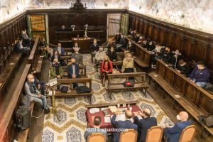 Il professor Santoro ha spiegato che nelle traslazioni il protagonista è sempre il santo:” Senza la volontà del santo le sue reliquie non si possono spostare: gli uomini non possono interferire con i progetti dei santi”. Ad approfondire il tema delle traslazioni delle reliquie è stato il professor Rosario Pellegrino, Associato di Lingua e traduzione francese all’Università di Salerno:” La venerazione dei resti mortali dei santi nel Medioevo era frequente e desiderata da tanti , al punto da lottare per ottenerle perché le città che le possedevano potevano contare sulla protezione celeste e anche perché queste città diventavano meta di pellegrinaggio: venivano considerate frammenti sospesi tra cielo e terra. Avevano un valore inestimabile ed erano dei mediatori della grazia di Dio. Nel 411 era obbligatorio avere una reliquia sotto l’altare di una chiesa. Anche in epoca carolingia, nell’800, era contro legge un altare che alla sua base non avesse una reliquia. Tante erano le false reliquie: fiorì un commercio di corpi e reliquie; addirittura ci fu un periodo in cui circolavano tre teste di San Giovanni Battista ”. Pellegrino ha anche ricordato le traslazioni delle spoglie di San Matteo, che il 6 maggio del 954 arrivarono a Salerno, e di Santa Trofimena a Minori. A introdurre il libro è stato il professor Carlo Santoli, italianista docente di Letteratura Italiana Moderna e Contemporanea presso l’Università di Salerno, che ha sottolineato alcuni fondamentali aspetti del romanzo:” Attraverso una scrittura lineare e tonale che definirei “prosa d’arte” vuol intessere una relazione dialogica tra il lettore e il testo nel quale vi è un’accurata e avvincente trattazione di episodi, paesaggi, personaggi, ambienti, riscostruiti con perizia e maestria documentaria. Coraggio, fede e umanità sono gli elementi fondanti di questo romanzo che dà una nuova visione del Medioevo”. Presenti alla serata gli studenti e i docenti dell’Istituto Della Corte Vanvitelli di Cava De’ Tirreni, diretto dalla professoressa Franca Masi. (FOTO DI EDOARDO COLACE).