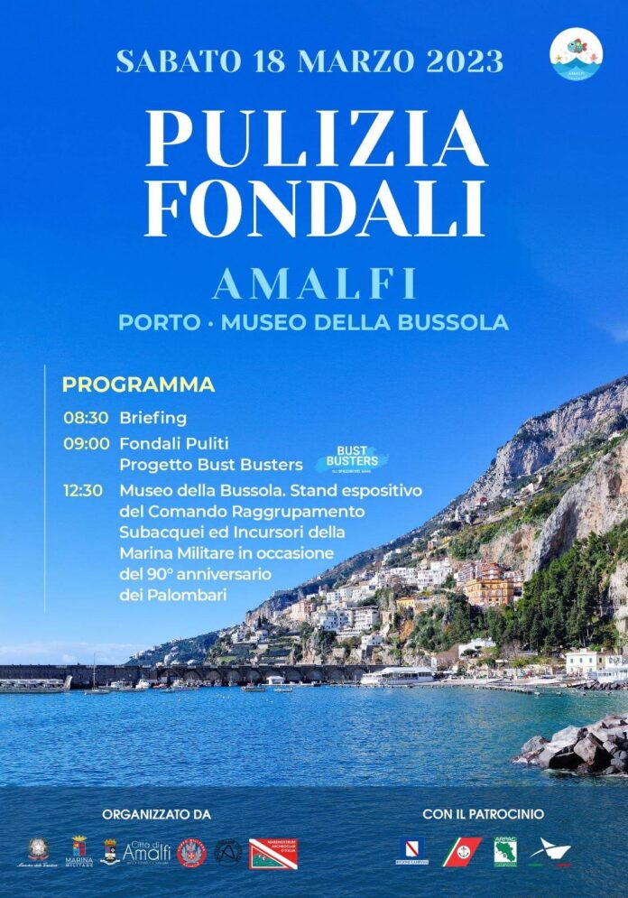 PULIZIA DEI FONDALI. Le operazioni di immersione, dopo un primo briefing iniziale, partiranno ufficialmente alle ore 9:30. L’attività si concentrerà nell’area del Porto turistico di Amalfi, antistante Piazza della Bussola, e proseguirà fino alle ore 12.30.