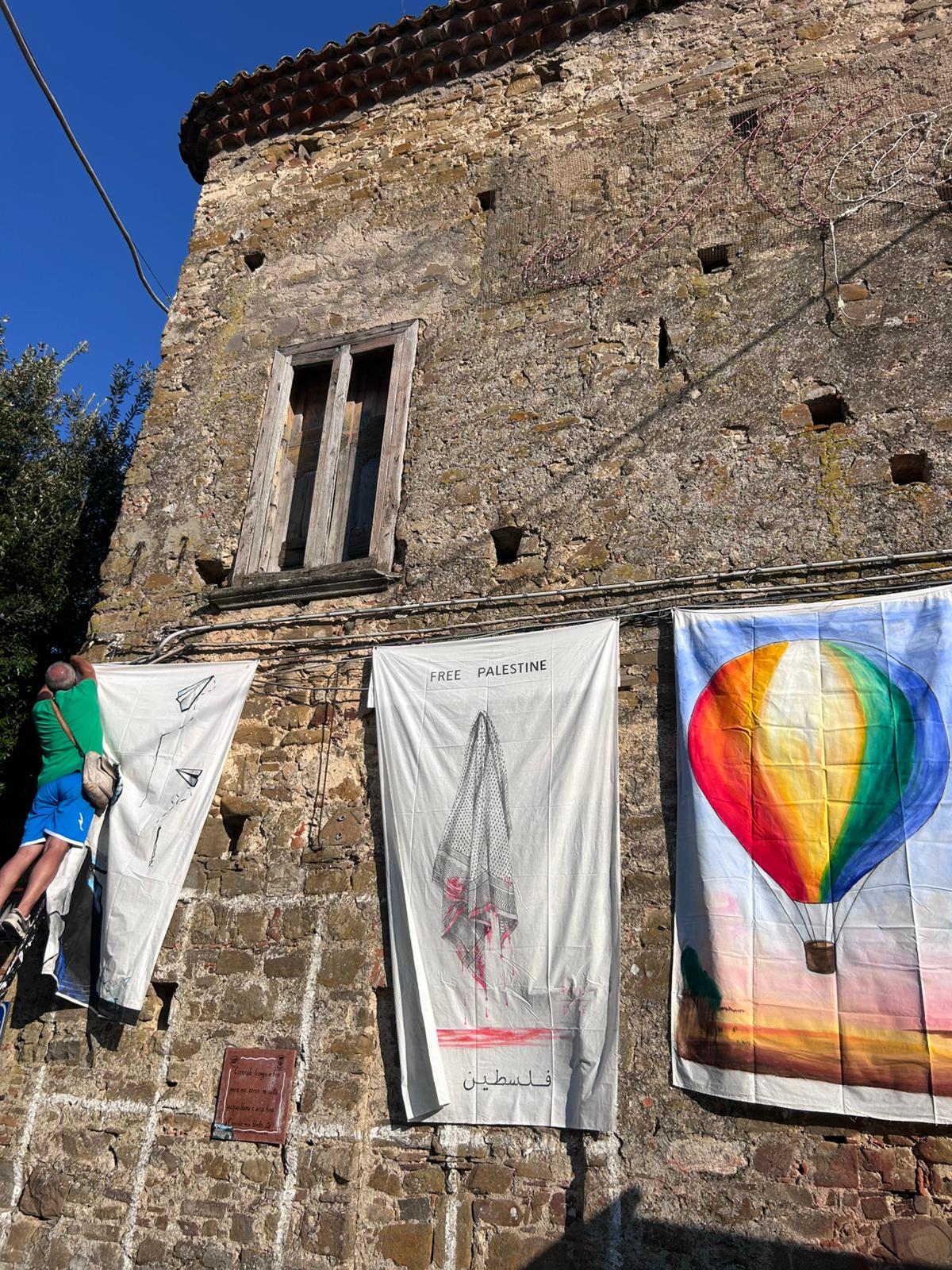 «Lenzuola d’Arte è una grande installazione a cielo aperto, dove la pluralità dei contenuti e degli stili pittorici, valorizzano un ambiente già di suo ricco di storia e fascino, ponendosi in dialogo anche con doni e capricci atmosferici che, tra delicate luci mattutine e soffusi bagliori dell’imbrunire, tra brezze leggere e venti bizzosi, sapranno ulteriormente impreziosire questi atipici teleri, inventando inattese cromie e scolpendo forme nuove e sempre nascenti nel vento».