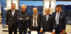 “ Il Rotary è Vita” è il motto scelto dal nuovo Presidente del “Club Rotary Salerno Est”, l’imprenditore Carmine Nobile, che ha ricevuto il collare e lo spillino, dal Presidente uscente, l’avvocato Carmine Napoli . Dopo la lettura della “Preghiera del Rotariano” ad opera di Padre Anacleto Bracco, l’avvocato Napoli ha ricordato alcune delle tante iniziative intraprese durante il suo mandato, come il Concerto del “Trio Monaco” al Teatro Verdi di Salerno per raccogliere fondi a favore del progetto “Polio Plus”; le “Domeniche della Salute” organizzate con i medici rotariani presso l’Oratorio” Via, Verità e Vita” della Parrocchia dei Santi Felice e Giovanni Battista in Pastorano; i tanti incontri con importanti personalità come Carlo Nordio, Andrea Pernice, Mario Capanna, Massimo Sgroi, Vincenzo Loia, Mario Capunzo, Claudio Widmann che hanno affrontato varie tematiche: giustizia, sanità, economia. Durante il suo mandato l’avvocato Napoli ha posto molta attenzione nei confronti delle nuove generazioni:” Siamo riusciti a costituire il nuovo “Club Interact Severi”. Proprio in questi giorni abbiamo ricevuto la Carta Costitutiva”. Il Presidente uscente Napoli ha consegnato tre Paul Harris, la più alta onorificenza del Rotary, ai soci che si sono distinti durante l’anno: Maurizia Albano, Eugenio Autieri e Igino De Giorgi. Il nuovo Presidente Carmine Nobile ha spiegato il significato del suo motto:” Il Rotary è vita perché ogni giorno nel mondo un milione e mezzo di rotariani danno il loro contributo disinteressato per migliorare la vita delle proprie comunità” e annunciato che durante il suo anno di presidenza saranno portati avanti i progetti storici del Club e altri progetti saranno dedicati agli studenti delle scuole salernitane e all’imprenditoria:” Anche organizzando incontri con personalità del mondo della cultura e dell’economia”.