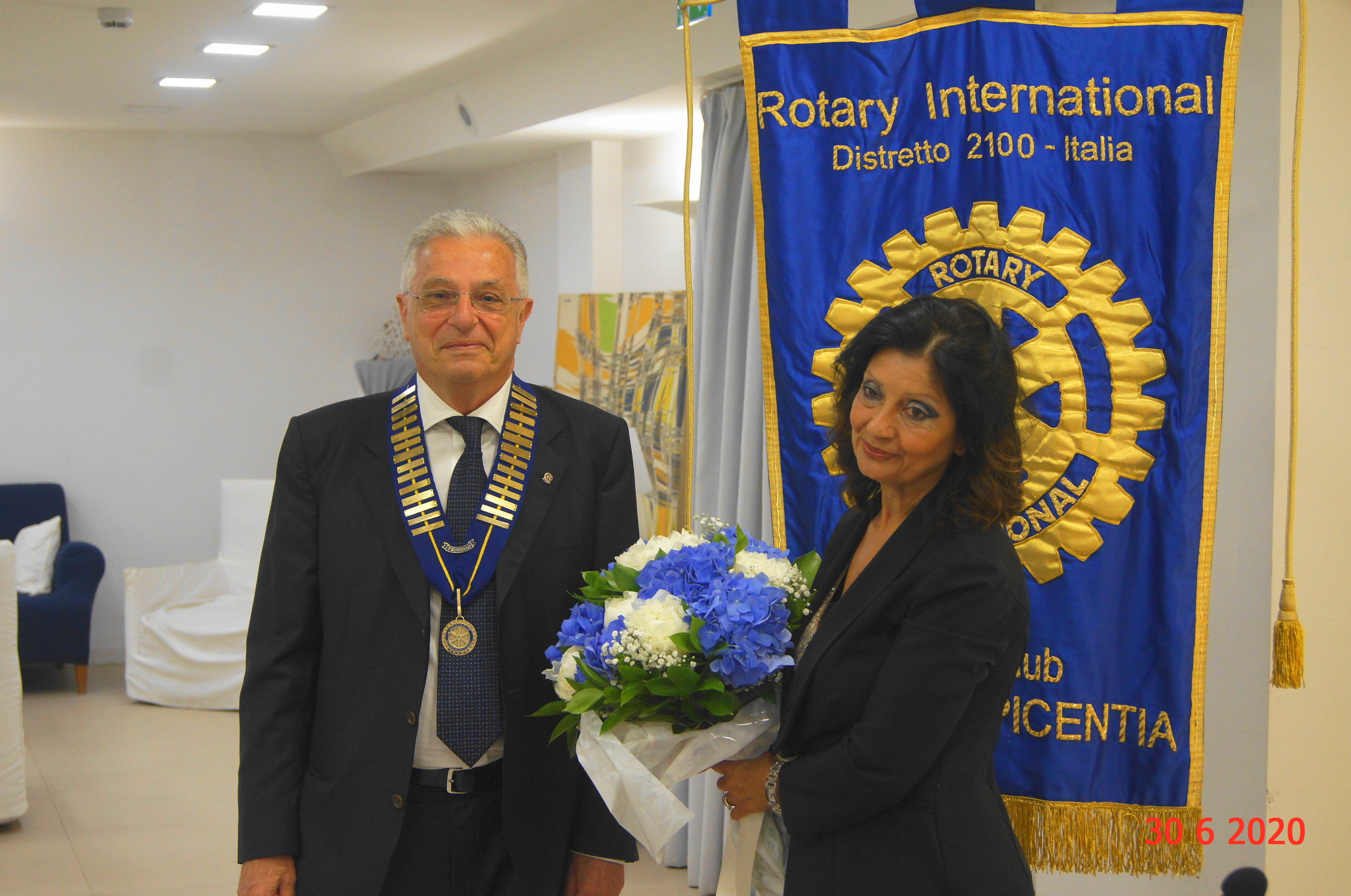 ”La professionalità al servizio della società “ è il motto scelto dal nuovo presidente del “Rotary Club Salerno Picentia”, l’ingegner Antonio Vicidomini che, durante la tradizionale cerimonia del “Passaggio delle Consegne”, ha ricevuto il collare e lo spillino dal presidente uscente, la dottoressa Carla Sabatella che, con emozione, ha ricordato, i tanti progetti realizzati durante il suo anno di presidenza, nonostante il Covid -19:” Abbiamo trovato sistemi alternativi per fare rete: sono stati donati dispositivi di protezione individuali al reparto di Neonatologia dell’Azienda Ospedaliera Ruggi, diretto dalla dottoressa Grazia Corbo e 80 saturimetri all’ASL di Salerno per le cure domiciliari COVID-19. Sono stati donati 2.000 euro al Banco Alimentare di Fisciano al quale, grazie al nostro socio Giuseppe Pizzuti, abbiamo anche donato 1000 Kg di farina “Molini Pizzuti. Sono stati donati pacchi di pasta e biscotti alla Croce Rossa Italiana e una piccola apparecchiatura di medicheria all’ Istituto Tecnico Nautico Giovanni XXIII di Salerno. Abbiamo partecipato al progetto del Banco Farmaceutico – contro la povertà sanitaria e donato, con altri due Club Rotary salernitani, un defibrillatore al parroco della Cattedrale, Don Michele Pecoraro, nell’ambito del progetto “Salerno Città Cardioprotetta”. Abbiamo iniziato, insieme agli altri Club Rotary del territorio, il progetto “Un giardino per la vita”, presso la struttura di salute mentale dell’ASL di Salerno di Via Bastioni, nel centro storico, diretto dal dottor Giulio Corrivetti, con il contributo della Rotary Foundation e la progettazione delll’ingegner Giuseppe Giannattasio”. La dottoressa Sabatella ha asseganto la Paul Harris, il più ambito riconoscimento del Rotary, ai soci Giuseppe Giannattasio e Giuseppe Pizzuti