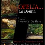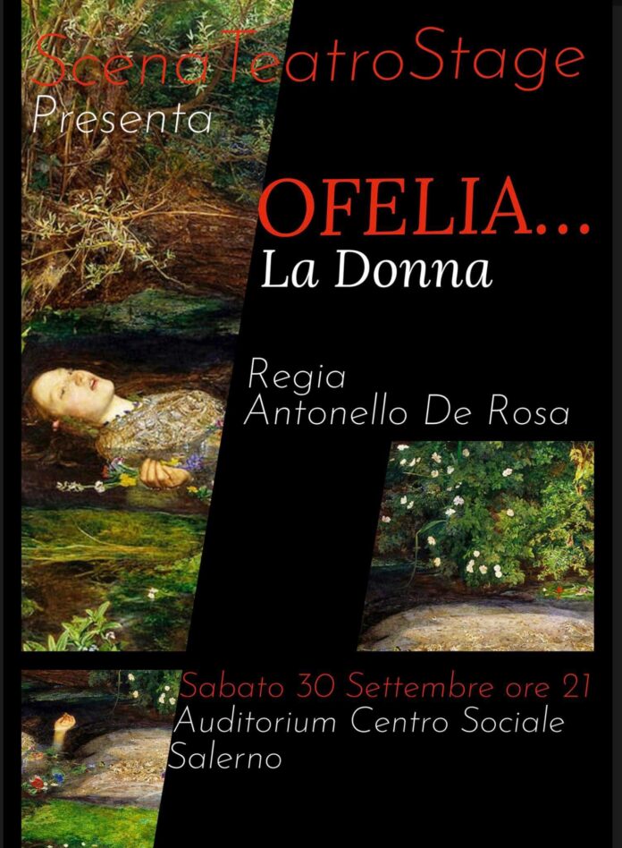 “Ofelia…la donna”, sabato 30 settembre alle ore 21.00 Auditorium Centro Sociale, via Cantarella – Salerno. Allo spettacolo prenderanno parte con l’attrice Margherita Rago gli allievi stagisti – Maria Robertazzi, Rosanna De Bonis, Cristiano Candurro, Maria Mazziotti, Carmela Liguori, Manuel Chianese, Grazia Savignano, Renato Rescigno, Daniela Guercio, Giuseppina Iovine, Martina Castellana, Daniela Caturano, Rosaria De Felice, Maria De Crescenzo, Lia De Blasio, Pupetta Di Nardo, Maria Staiano, Maria Russo, Nunzia Schiavone, Ludovico Brancaccio, Michele Gaggia, Asia Bisogno, Anna Napoli, Annamaria Somma ed Armando Incolingo. Il costo del biglietto è di € 10.00