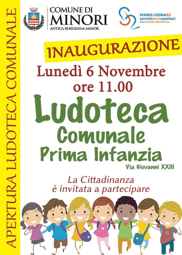 Lunedì 6 novembre anche Minori vedrà aprire le porte ad un nuovo servizio per la prima Infanzia , la ludoteca Comunale per la prima infanzia, finanziata con i fondi del Piano d’Azione per la Coesione (PAC) uno strumento di riprogrammazione strategica e di innovazione di metodo a cui il Ministero per lo Sviluppo e la Coesione ha fatto ricorso per potenziare i servizi di cura e socio educativi dell’infanzia. La ludoteca per la prima infanzia, offrirà ai bambini, di età compresa tra 6 mesi e 3 anni di età, occasioni di gioco e di socializzazione, guidate da personale adulto con funzioni di animazione e accompagnamento. Si tratta di un servizio di aggregazione di bambini/e che promuove e valorizza la funzione educativa del gioco, per uno sviluppo armonico e completo della loro personalità. Il servizio sarà gestito dall’Ats tra la Cooperativa Sociale Il Girasole di Salerno e la Cooperativa Sociale La Fonte di Maiori che avranno cura di predisporre una programmazione socio educativa qualificata, innovativa e entusiasmante per i piccoli ospiti, attraverso anche periodici percorsi di sostegno alla genitorialitá. L’apertura della Ludoteca comunale afferma la dottoressa Citro, consigliere delegata alle politiche sociali, nonché, pedagogista di professione rappresenta per la comunità di Minori” la promozione di un servizio innovativo per il territorio, la possibilità di offrire ai servizi sociali territoriali uno spazio socio-educativo qualificato a sostegno dei nuclei familiari particolarmente svantaggiati, e soprattutto un luogo privilegiato di socializzazione e di opportunità per le donne che lavorano e non hanno una rete familiare per la gestione dei figli “ . La struttura sarà aperta dal lunedì al sabato dalle 8.00 alle 12.00 ed anche nel periodo estivo. Per la Ludoteca Prima Infanzia, il requisito di ammissione del bambino è aver compiuto i sei mesi all’atto dell’ iscrizione e non aver superato i tre anni di età. Il sindaco Andrea Reale entusiasta e soddisfatto di poter annoverare un servizio che completa così tutte le opportunità educative per la prima infanzia invita la cittadinanza ad essere presente alla cerimonia di lunedì 6 novembre alle ore 11 alla presenza di autorità civili e religiose presso la struttura in via Giovanni XXIII.