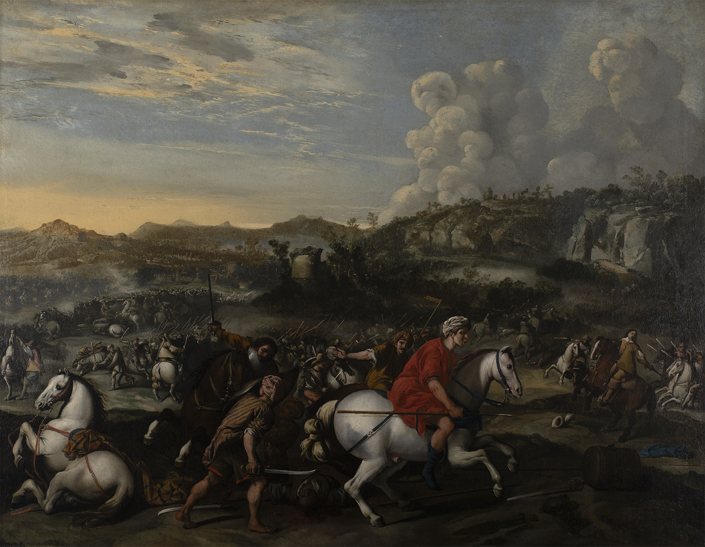 In questa prima esposizione, tutto ruota attorno all’opera La Battaglia tra cristiani e turchi di Salvator Rosa del 1630, voluta dalla Galleria Baccaro per celebrare i suoi vent’anni di ricerca e concessa grazie alla visione e alla generosità del Presidente Diodato De Maio – Fondazione De Chiara De Maio