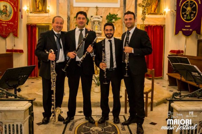 Si conclude sabato 28 luglio (ore 20,00) la ricca rassegna del Maiori Music Festival con un concerto da camera, “Quartetto concertante”, eseguito dall’Amalfi Coast Clarinet Quartet nel salone degli Affreschi di Palazzo Mezzacapo a Maiori,. La formazione del quartetto classico (tre clarinetti soprani e uno basso), nata nel 2017 e composta da musicisti della Costiera amalfitana, Salvatore Dell’Isola, clarinetto Giovanni Fusco, clarinetto Paolo D’Amato, clarinetto e clarinetto piccolo Demetrio Buonocore, clarinetto basso, si avvale di arrangiamenti originali e spazia in un repertorio che prevede l’esecuzione di brani che vanno dalla musica classica a meravigliosi temi da film, dal Barocco al Ragtime, dal Blues allo Swing. Il concerto avrà quindi un percorso tra vari generi musicali che metterà in risalto tutte le caratteristiche timbriche e tecniche dello strumento. Questi i brani che saranno eseguiti dal quartetto: Le nozze di Figaro, Mozart; Largo al factotum, Rossini; Antiche danze ungheresi, Farkas; Bach goes to town, Templeton; Air scandinave, Zemp; Two guitars, Russian folk tunes – arr. Bennett; Oh, Lady be good, Gershwin; Summertime, Gershwin.