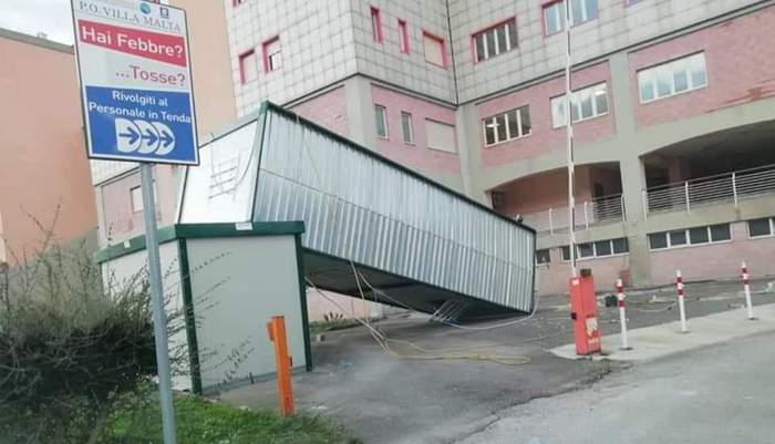 Nella notte, infatti, il vento ha provocato la caduta di alberi in diverse zone della città. Paura anche all’ospedale dove le raffiche hanno ‘accartocciato’ la tenda pre-triage e spostato un container che, per poco, non si è ribaltato.