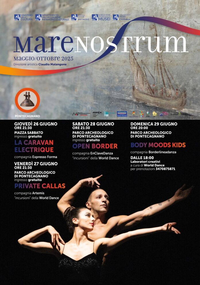 Gli eventi organizzati nell’ambito della rassegna internazionale “Mare Nostrum” animeranno il Parco Archeologico di Pontecagnano, sito in via Stadio, con performance, musica, installazioni artistiche e laboratori e saranno arricchiti dal programma del “Festival Salerno Danza” che coinvolgerà in generale la città di Pontecagnano Faiano.