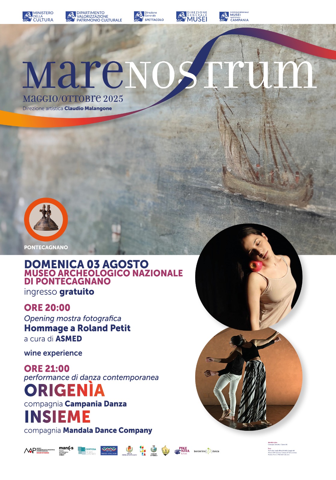 Domenica 3 agosto 2025 il Museo archeologico nazionale di Pontecagnano, in occasione della #domenicalmuseo, l’iniziativa del Ministero della Cultura che prevede l’ingresso gratuito nei luoghi della cultura statali ogni prima domenica del mese, propone un’apertura straordinaria serale fino alle 23.30, dedicata al nuovo appuntamento della rassegna di danza contemporanea “Mare Nostrum”.