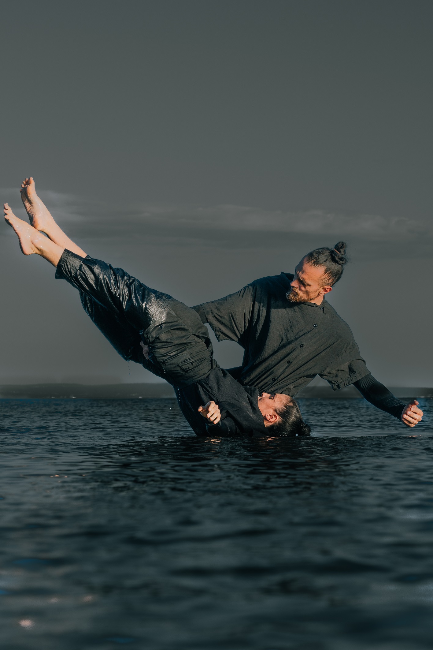 Le immagini raccontano l’osmosi tra il gesto coreutico e la materia fluida del mare: ogni scatto suggerisce un legame segreto, quasi mitico, tra il moto perpetuo delle onde e il fluire della carne danzante.