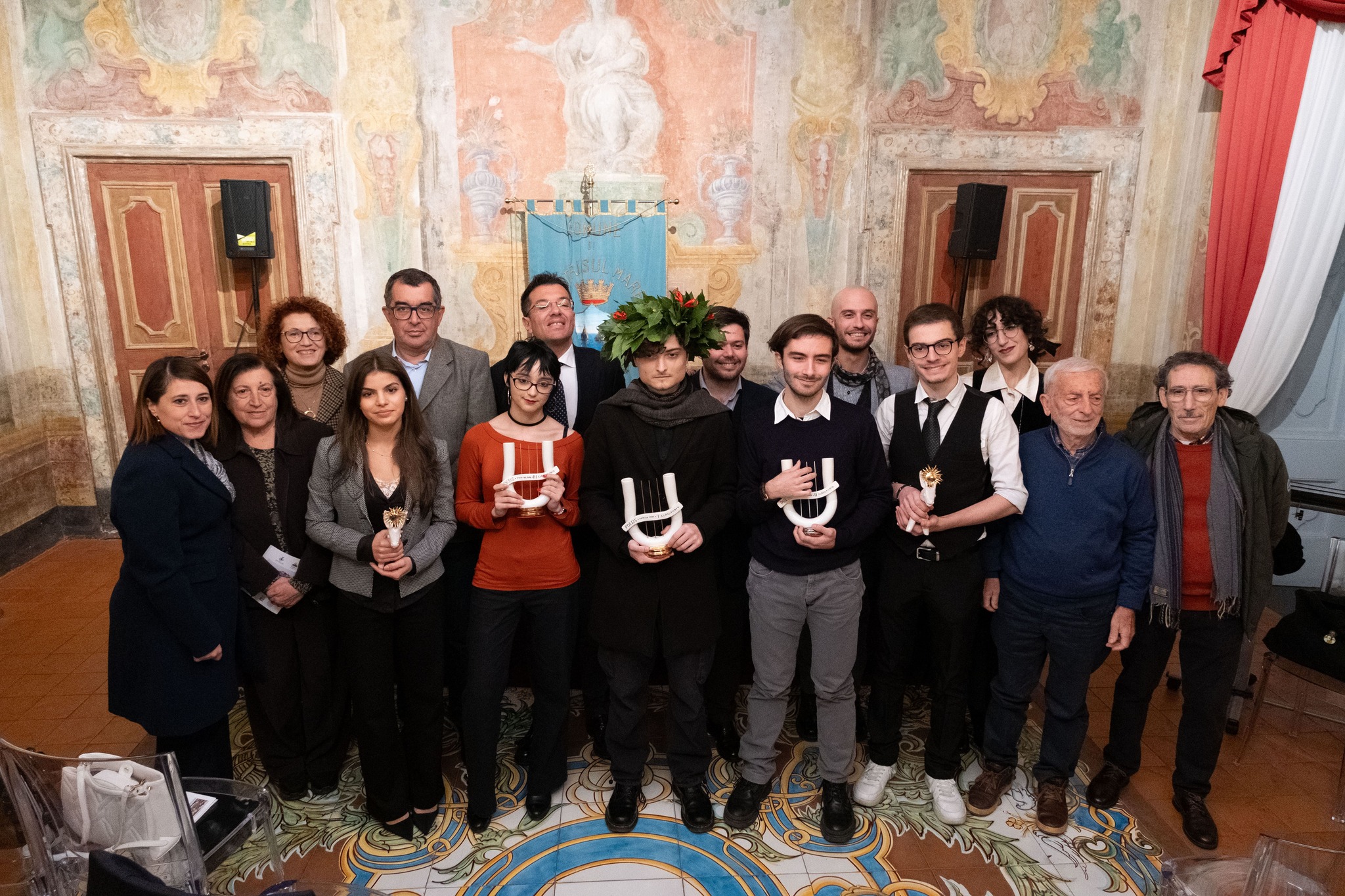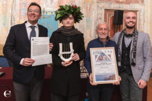A porre la corona d’alloro, realizzata dal fiorista vietrese Vincenzo Pinto, sul capo del giovane poeta che frequenta la V classe dell’Istituto Ettore Majorana di Latina, è stato il Sindaco del Comune di Vietri Giovanni De Simone che ha apprezzato il livello culturale dei ragazzi partecipanti al concorso di poesia:” Un premio che punta sui giovani e che negli anni è cresciuto sempre di più. Sono sempre di più i giovani che si avvicinano alla poesia, alla cultura. Non è semplice scrivere una poesia e questi giovani ci inorgogliscono”. La motivazione del premio è stata letta da Alfonso Mauro che ha ricordato che Mattia Eramo si era classificato secondo nella scorsa edizione del “Premio Poesis” e sottolineato la perfezione formale dell’autore:” È capace di saldare felicemente insieme forma e contenuto”. Mattia ha ricevuto anche un premio in danaro, la pergamena e la meravigliosa lira in ceramica realizzata da Salvatore e Daniela Scalese che hanno spiegato le tecniche di lavorazione di questo pregevole manufatto. Secondo classificato con la sua poesia “Sogno d’un sogno” è stato Manuel Visani di Parma, dove ha frequentato la III C del “Liceo Classico Gian Domenico Romagnosi”, premiato dal Vicesindaco Angela Infante, che ha apprezzato l’impegno dei giovani poeti:” Pensiamo che i giovani siano distratti dai social e che non si avvicinino al proprio animo: attraverso le loro poesie questi ragazzi ci dimostrano di avere una grande sensibilità e di saper trattare varie tematiche di attualità”, e dal professor Alberto Miraglia che ha spiegato che non è semplice giudicare una poesia: “Non esiste una metrica per capire la grandezza di una poesia: sono tutte poesie che sottolineano la sapienza della parola”. Al terzo posto si è classificata, con la sua poesia scritta in inglese, “The Trial, il Processo” Diana Maria Enescu di Sant’Eusanio del Sangro (Chieti) dove frequenta il Liceo Scientifico Galileo Galilei. Diana è stata premiata dal Maestro Salvatore Scalese e dal professor Antonio Gazia che ha spiegato il significato simbolico dell’asinello letterato: “L’asino di Apuleio rappresenta la natura umana che ha bisogno di compiere un suo percorso di purificazione”. Quarta classificata, con la sua poesia “Sei la belva che percorre la placida terra”, è stata Aminah Ceriani di Legnano, (Milano) dove ha frequentato la VB dell’Istituto Daniele Crespi. Aminah è stata premiata da Alfonso Mauro e da Elisa D’Arienzo che ha realizzato il bellissimo asinello in ceramica con il sole tra le orecchie:” Per me modellare l’argilla è come per questi ragazzi scrivere poesie”. Quinto classificato con la sua poesia “Chi sono” è stato Alessandro Fiscella di Torre del Greco (NA), dove ha frequentato la V C del Liceo Classico “Gaetano De Botti”. Alessandro è stato premiato da Mariangela Stanzione e Pina Masturzo. Il “Premio del Pubblico” dedicato a Franco Citarella, uno dei fondatori de “La Congrega Letteraria” che ci ha lasciati troppo presto, è stato vinto da Francesco Piccinni di Bari, dove ha frequentato la II E del Liceo Classico “Quinto Orazio Flacco”, che con la sua poesia “Terra Agra”, ha ottenuto 850 like sui social dove oltre 14000 utenti sono stati raggiunti dai post degli elaborati finalisti del Premio. Menzioni di merito sono state assegnate a Sofia Repetto di Mondovì (Cuneo) del Liceo Vittoria Colonna, per la sua poesia “Gare Du- Midi”; a Sara Ramjeeawon di Mentana (Roma) del “Liceo Scientifico Giuseppe Peano” con la sua poesia “Burrasca” e a Francesco Piccinni che ha vinto anche il “Premio del Pubblico”. I dieci brani finalisti sono stati letti con grande professionalità dalla dottoressa Mariangela Stanzione, studiosa di teatro e recitazione. Attestati di partecipazione sono stati consegnati da Vittoria Memoli, Nicla De Rosa, Luigi Nicolao, e Simone De Luca, ai seguenti finalisti: Hiba Qanaoui di Barcellona Pozzo di Gotto (Messina), che ha frequentato la III A chimica dell’ITET “Enrico Fermi” per la sua poesia “Orizzonte verso Cutro”; Enxhi Ocka di Casarsa della Delizia (Pordenone), che ha frequentato la IV B del Liceo “Giacomo Leopardi” per la sua poesia “poeta di uno solo”. L’avvocato Daniele Benincasa, Assessore alla Cultura e alla Ceramica del Comune di Vietri Sul Mare ha spiegato che il Comune di Vietri Sul Mare organizza tante iniziative culturali:” Puntiamo molto sulla Cultura che può sicuramente considerarsi, insieme alla ceramica, uno degli attrattori turistici del nostro territorio. Il nostro Comune è ormai identificato come “Polo Culturale” in quanto Vietri è sicuramente Ceramica, ma è anche Cultura”. La professoressa di Lettere Pina Masturzo, componente della giuria, ha lodato i giovani poeti: “Hanno una grande attenzione per la contemporaneità. Mi auguro che il loro sguardo nei confronti del presente, nonostante le sue problematiche, rimanga vivo”. La professoressa di Lettere, Rosa Viscito, componente della giuria, ha apprezzato l’impegno dei ragazzi e la loro capacità di utilizzare la metrica. Alfonso Mauro ha ricordato che l’edizione di quest’anno è stata dedicata alla memoria del cofondatore del premio, il professor Antonio Avallone:” Non è più ma vive in ciò che ci ha insegnato. È stato cofondatore della Congrega Letteraria e presidente di giuria del concorso, amato insegnante, e animatore instancabile di iniziative culturali. Dobbiamo a lui l’idea di dedicare il concorso esclusivamente agli studenti”. A ricordale con emozione il professor Avallone sono state: la moglie, la professoressa Margherita Spinazzola, e la figlia Irene. Durante la serata sono stati ringraziati anche gli sponsor, i partner e i collaboratori della Congrega Letteraria. Per aver concesso il loro patrocinio: il Comune di Vietri sul Mare; il Comitato Provinciale UNPLI Salerno APS; la Pro Loco di Vietri sul Mare, presieduta da Cosmo Di Mauro; il R