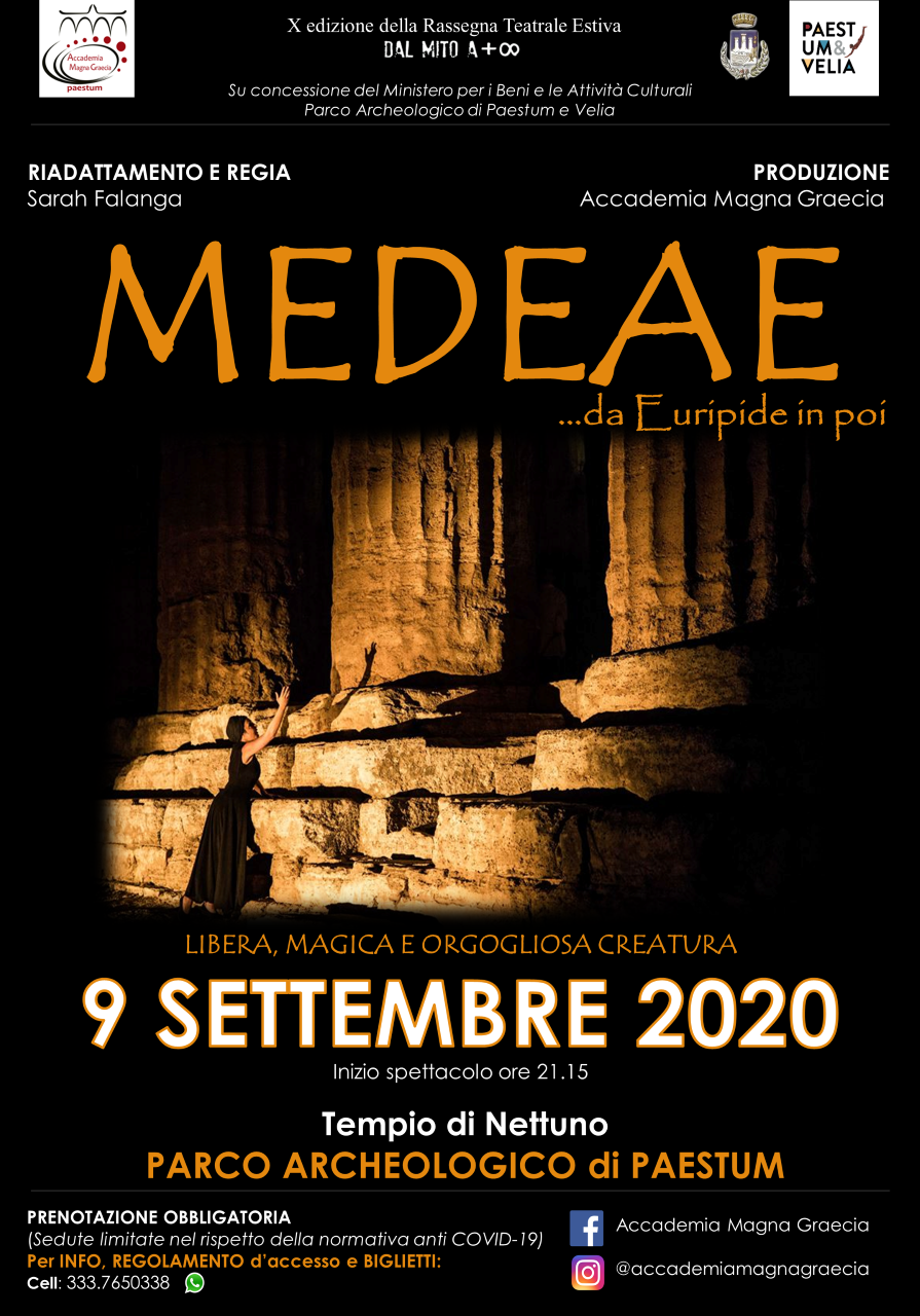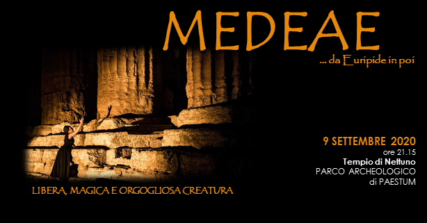 “Vorrebbero chiuderci…chiudere occhi e bocca e modellarci il pensiero, deviarlo, impaurirlo…Il pubblico non vuole bugie, soltanto verità! Medea torna in scena nonostante tutto…Richiestissimo l’incontro con il teatro, con la catarsi al cospetto della culla delle nostre radici: PAESTUM. I nostri spettacoli non distraggono, approfondiscono l’essenza di ogni uomo…Il pubblico vuole alimentarsi, non ubriacarsi di bugie! …e il coraggio di Medea vince su tutto!” – afferma la regista SARAH FALANGA